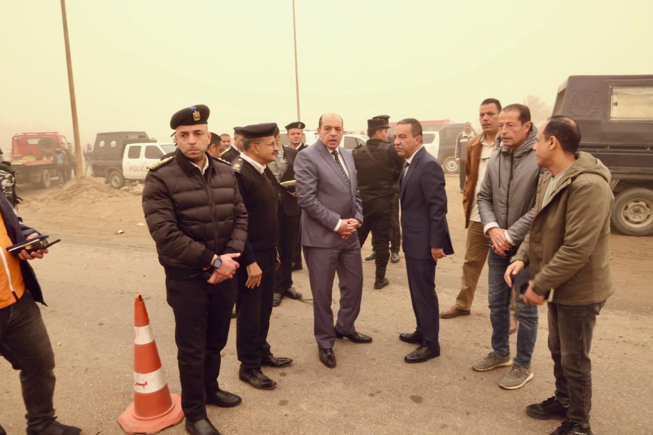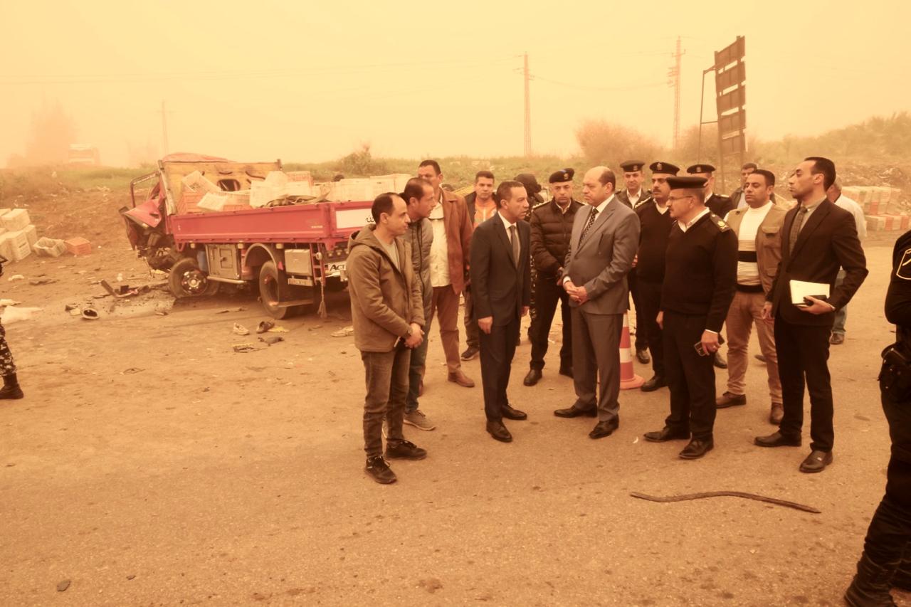 وفور الإبلاغ عن وقوع الحادث بالسادات، توجّه على الفور اللواء عمرو الغريب، محافظ المنوفية، إلى موقع الحادث في تمام السابعة صباحًا، لمتابعة تداعياته وتقديم الدعم اللازم، بحضور اللواء علاء الجاحر، مساعد وزير الداخلية مدير أمن المنوفية، ومدير إدارة المرور، ورئيس مركز ومدينة السادات.