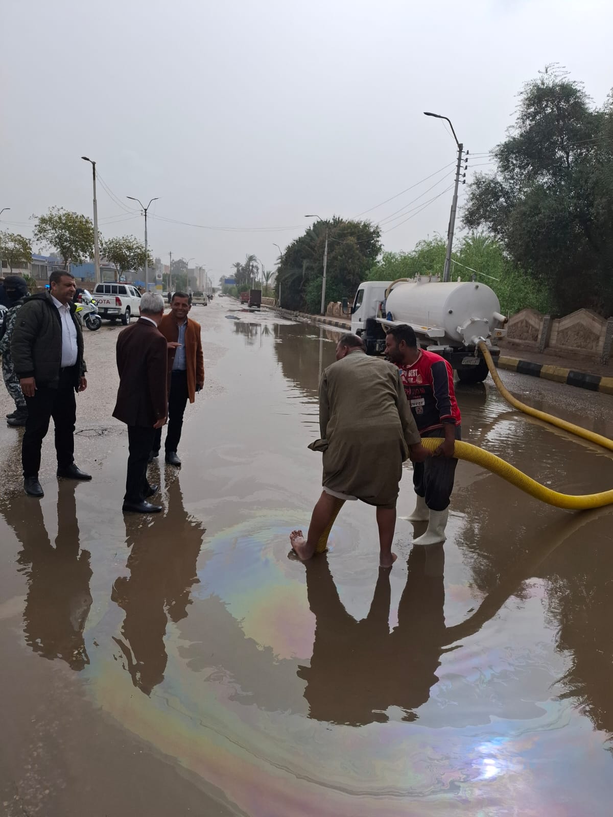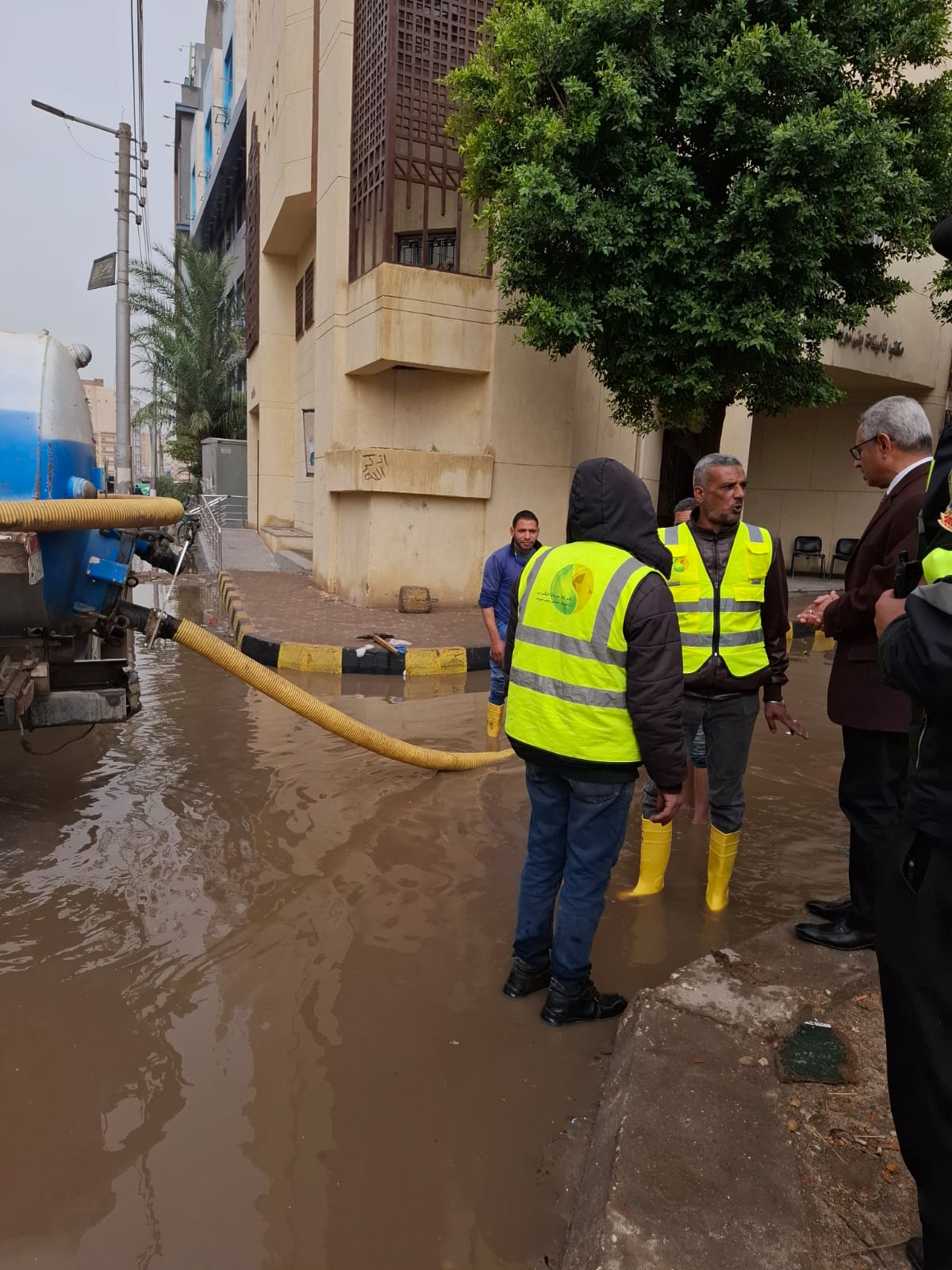 وخلال جولته، تفقد المحافظ الحالة العامة بالشوارع، واطمأن على انتظام أعمال رفع وشفط مياه الأمطار، حيث تابع جانبًا من الأعمال التي تنفذها فرق شركة مياه الشرب والصرف الصحي، والوحدات المحلية، بالتنسيق مع الحماية المدنية والمرور وكافة الجهات المعنية، للتعامل الفوري مع أي تجمعات مائية.
