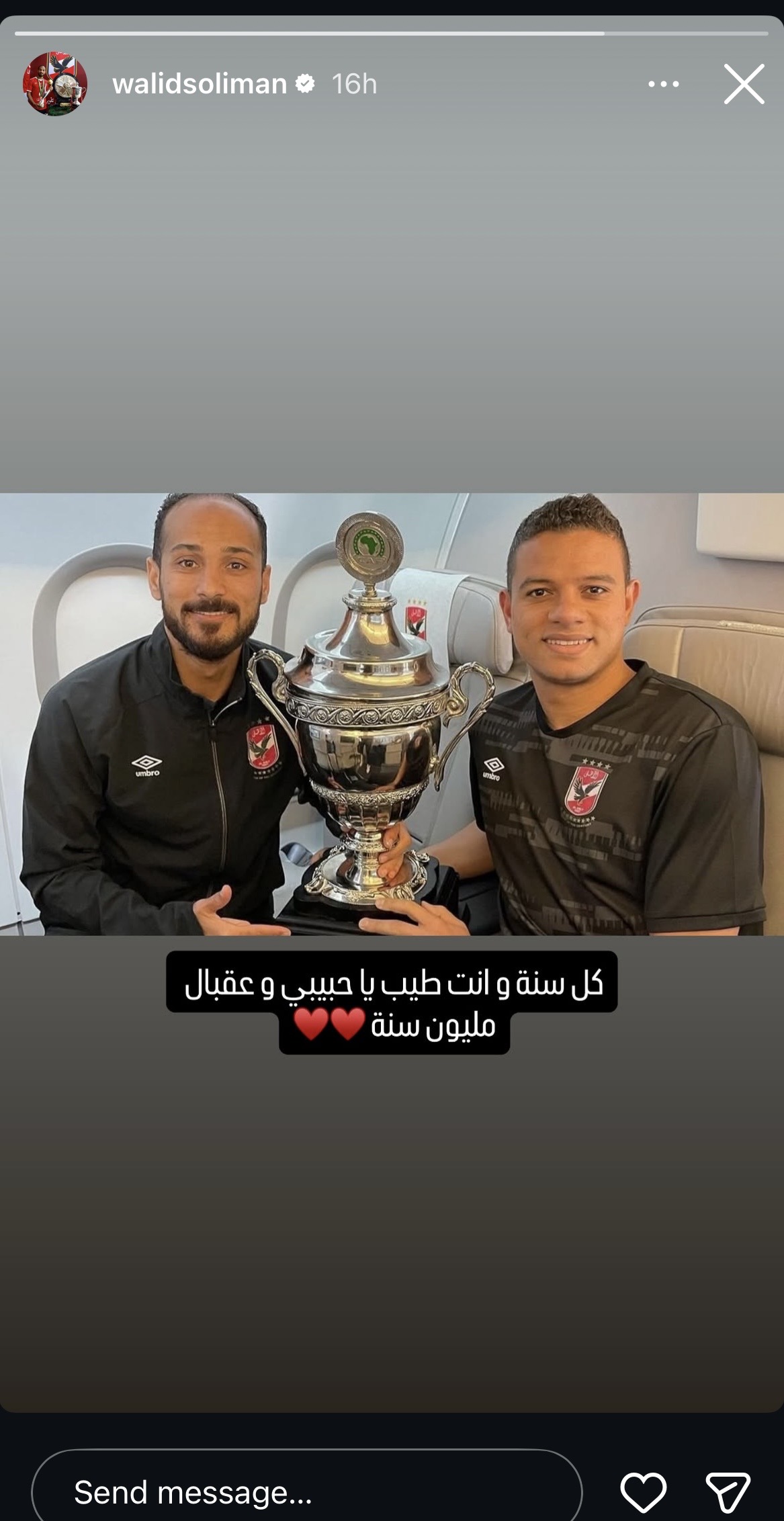 وكان قد شارك وليد سليمان، لاعب النادي الأهلي السابق، صورة جديدة في أحدث ظهور رفقة زوجته عبر حسابه الشخصي على موقع التواصل الاجتماعي انستجرام.