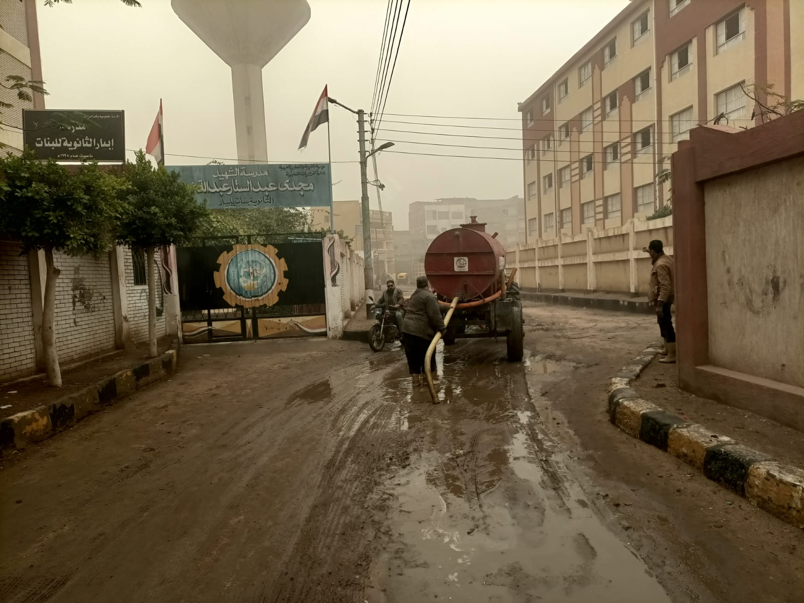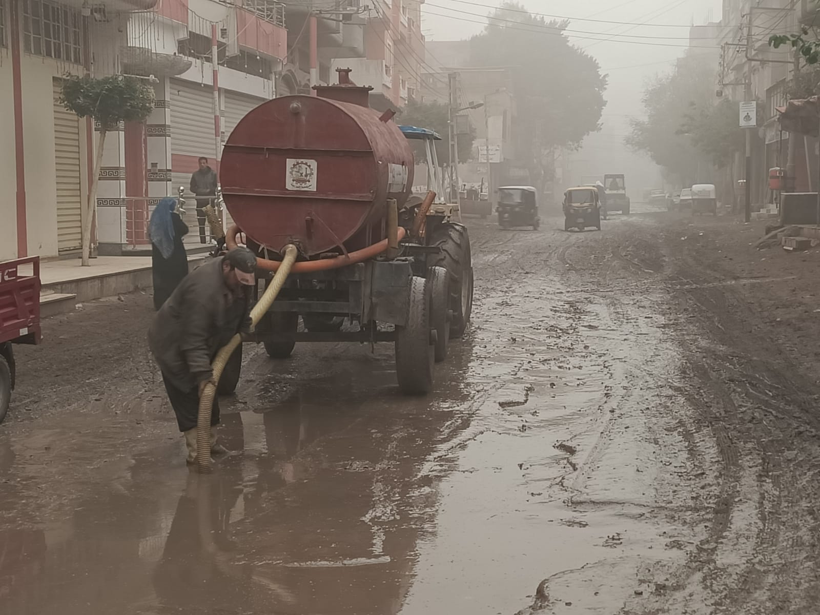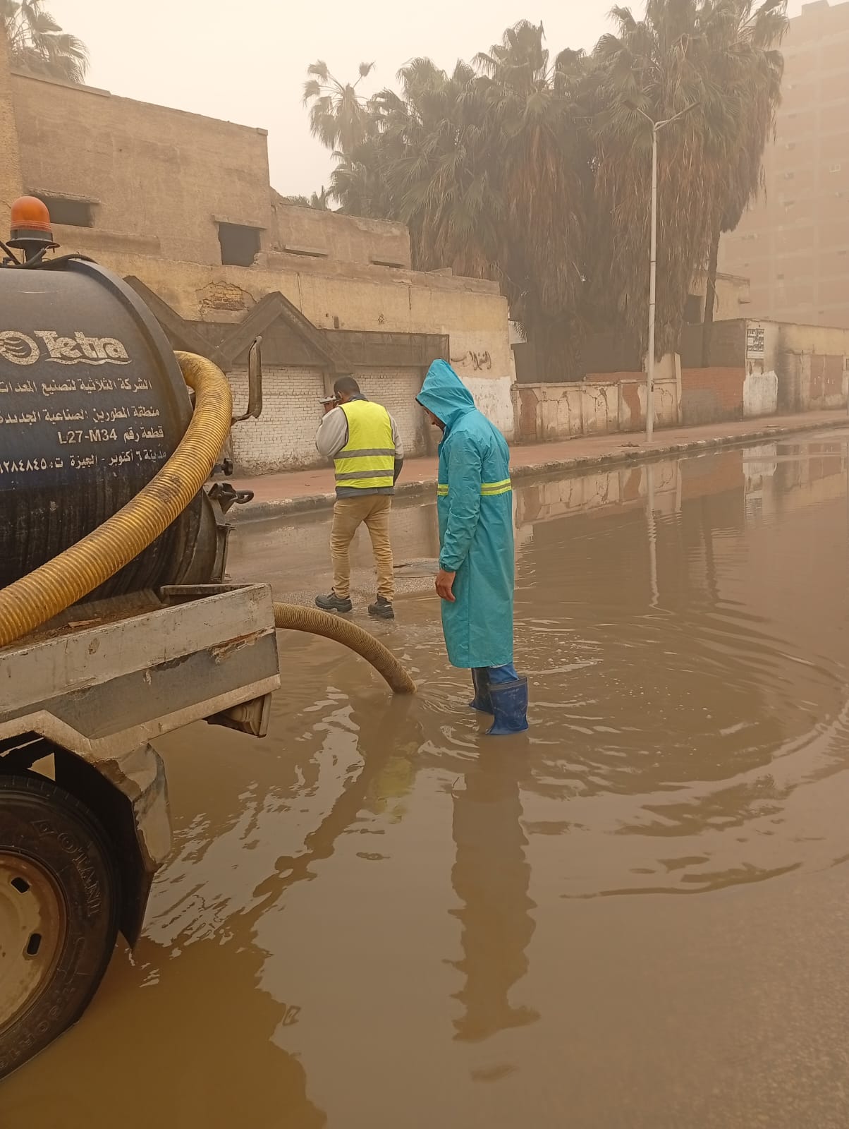 وأكد المحافظ أن فرق العمل الميدانية تواصل جهودها على مدار الساعة، من خلال الانتشار المكثف للمعدات وسيارات شفط المياه، ورفع تجمعات مياه الأمطار أولًا بأول، خاصة بالمناطق المنخفضة والطرق الحيوية، بما يضمن تحقيق السيولة المرورية والحفاظ على سلامة المواطنين.