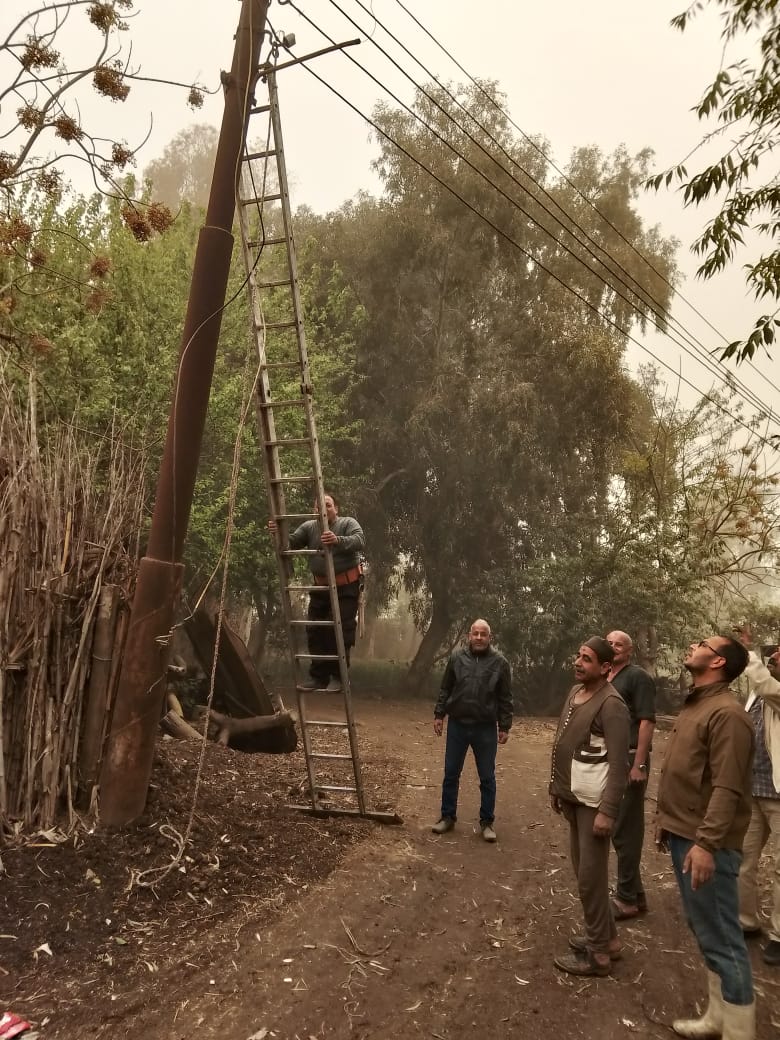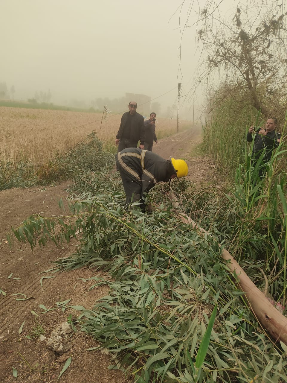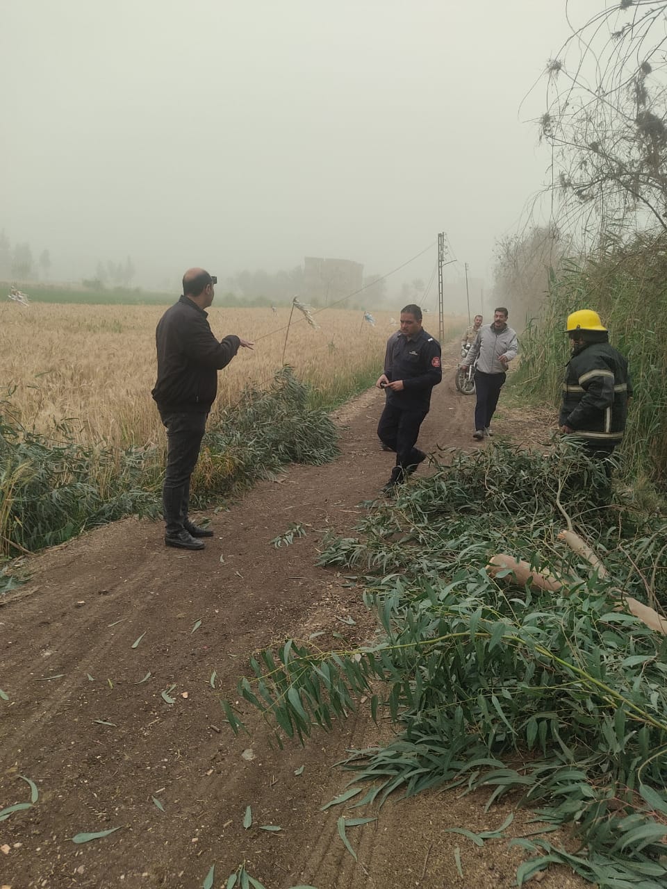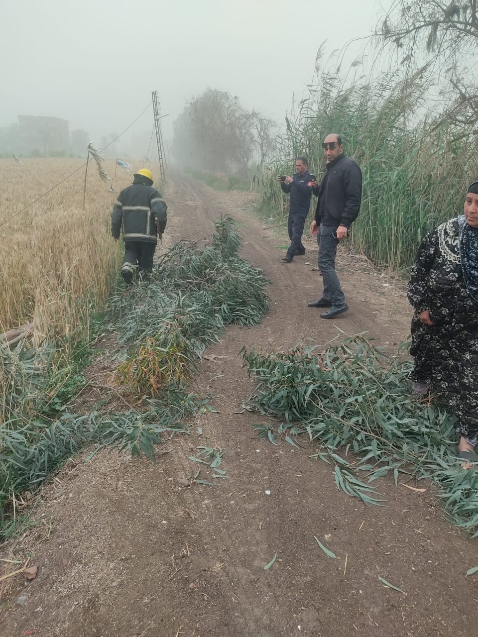 كما تم التعامل مع سقوط أشجار وأعمدة بنطاق الوحدة المحلية لمركز ومدينة شبين الكوم بقرى ميت الموز والماي على ترعة أم خليفة، وكذا التعامل الفوري مع تساقط الأعمدة والأسلاك المقطوعة على بحر سيف.