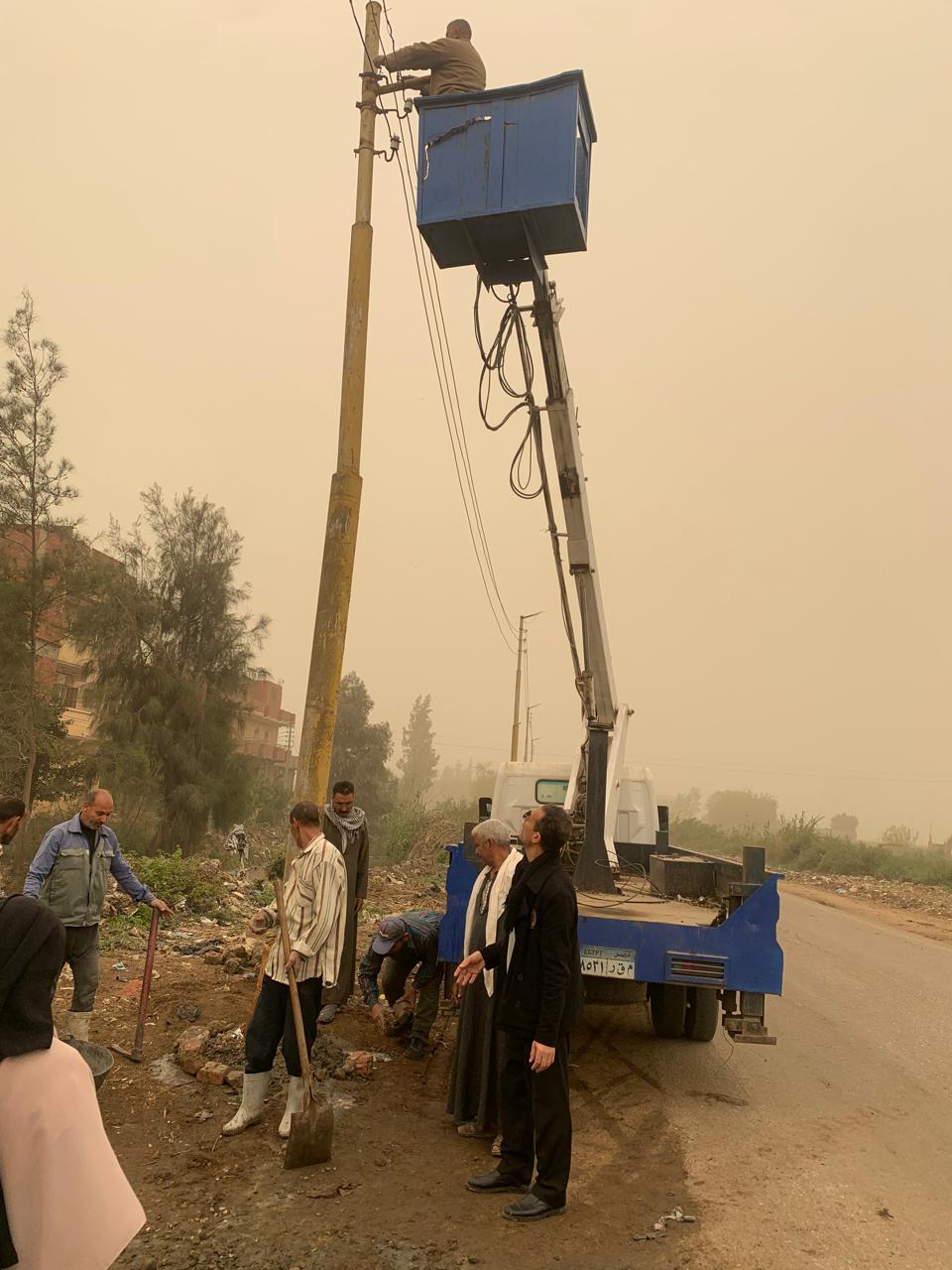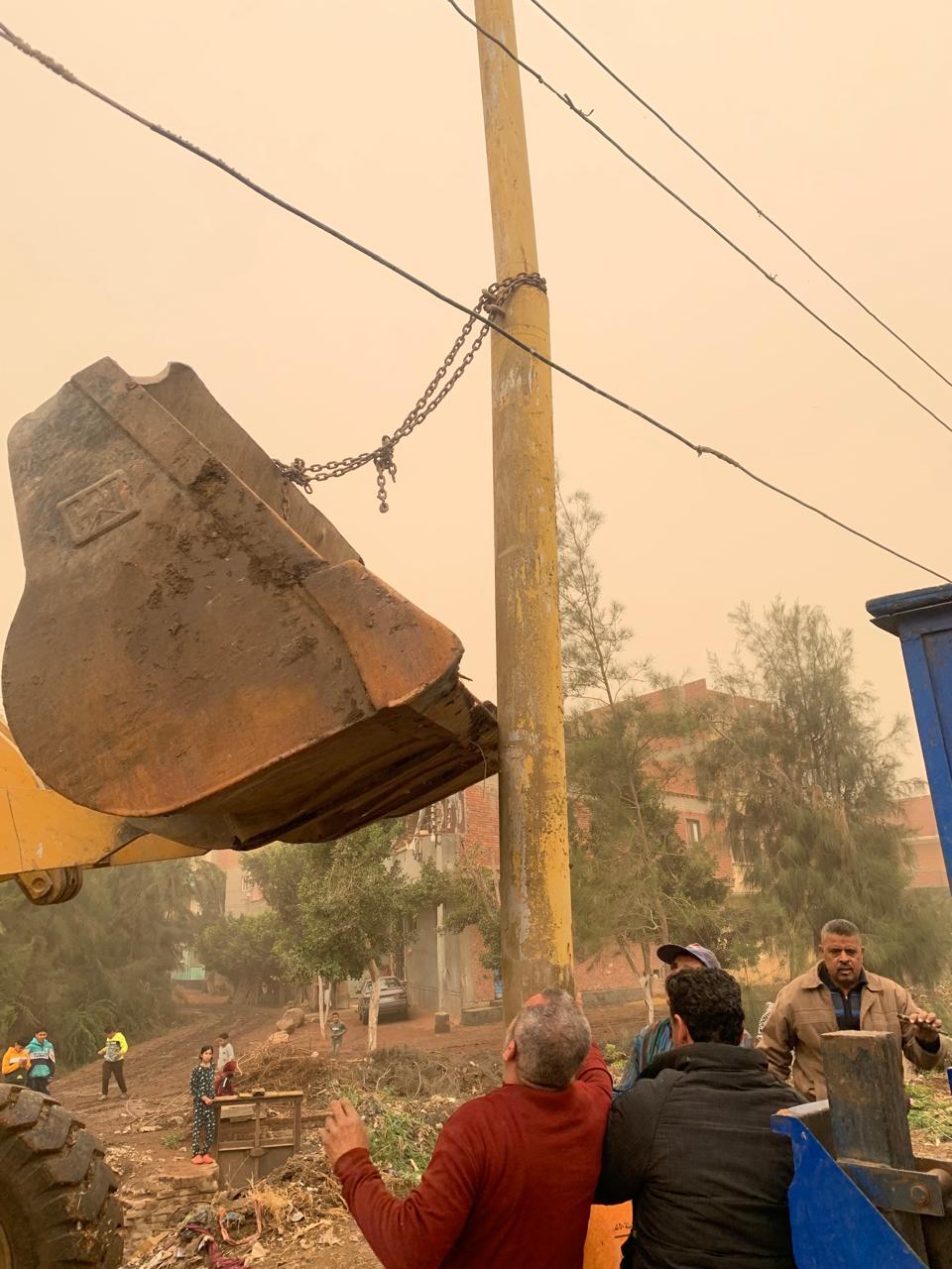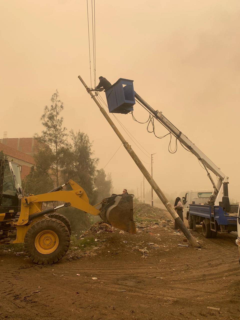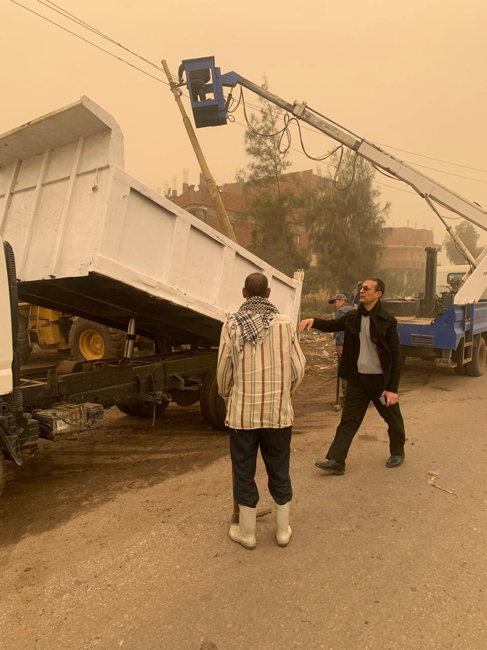 كما تم التعامل مع سقوط أشجار وأعمدة بنطاق الوحدة المحلية لمركز ومدينة شبين الكوم بقرى ميت الموز والماي على ترعة أم خليفة، وكذا التعامل الفوري مع تساقط الأعمدة والأسلاك المقطوعة على بحر سيف.