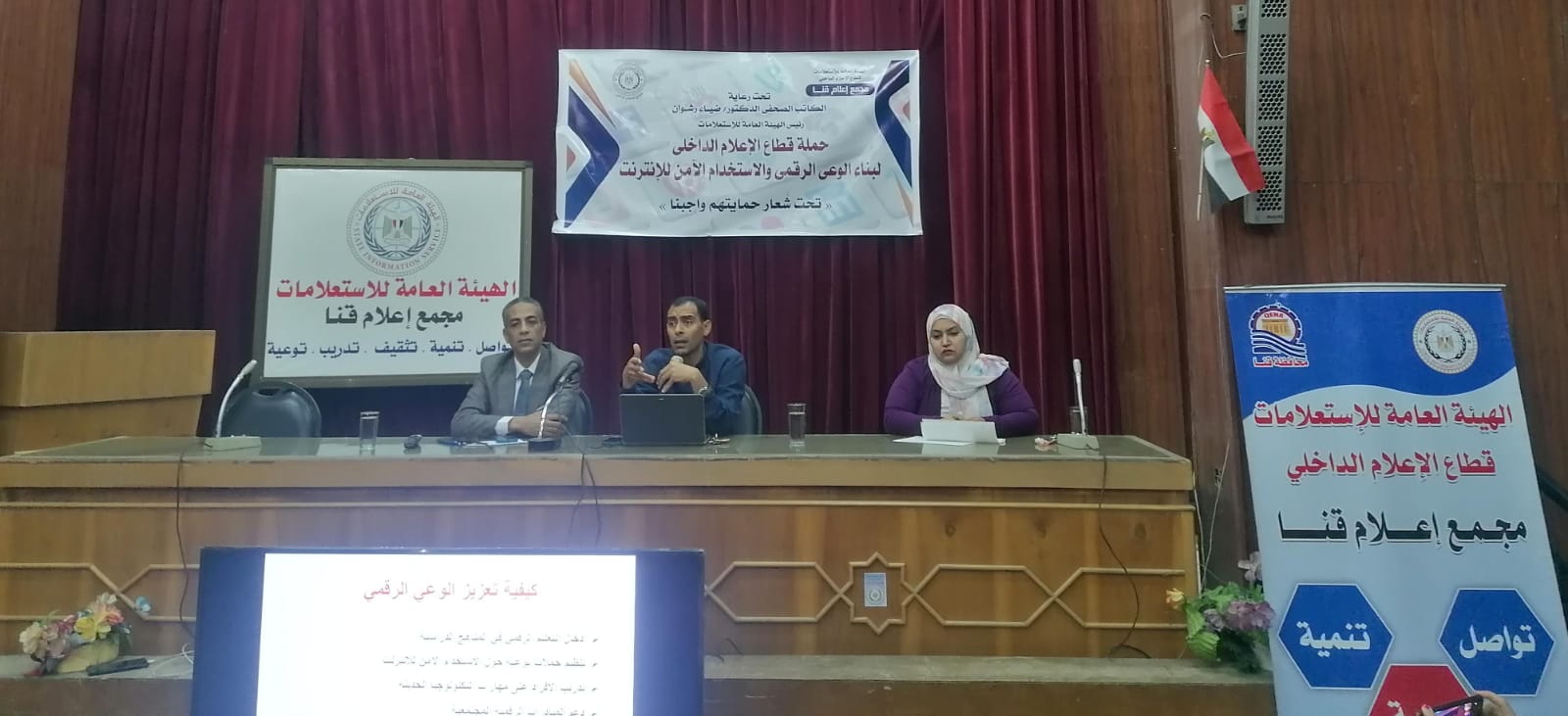 نظم مجمع إعلام قنا، ندوة بعنوان " تعزيز الوعي الرقمي لتحقيق التنمية المستدامة " ضمن حملة قطاع الإعلام الداخلي بإشراف الدكتور أحمد يحي، رئيس قطاع الإعلام الداخلي، لبناء الوعى الرقمى والاستخدام الآمن للأنترنت، والتي تحمل شعار "حمايتهم واجبنا ".