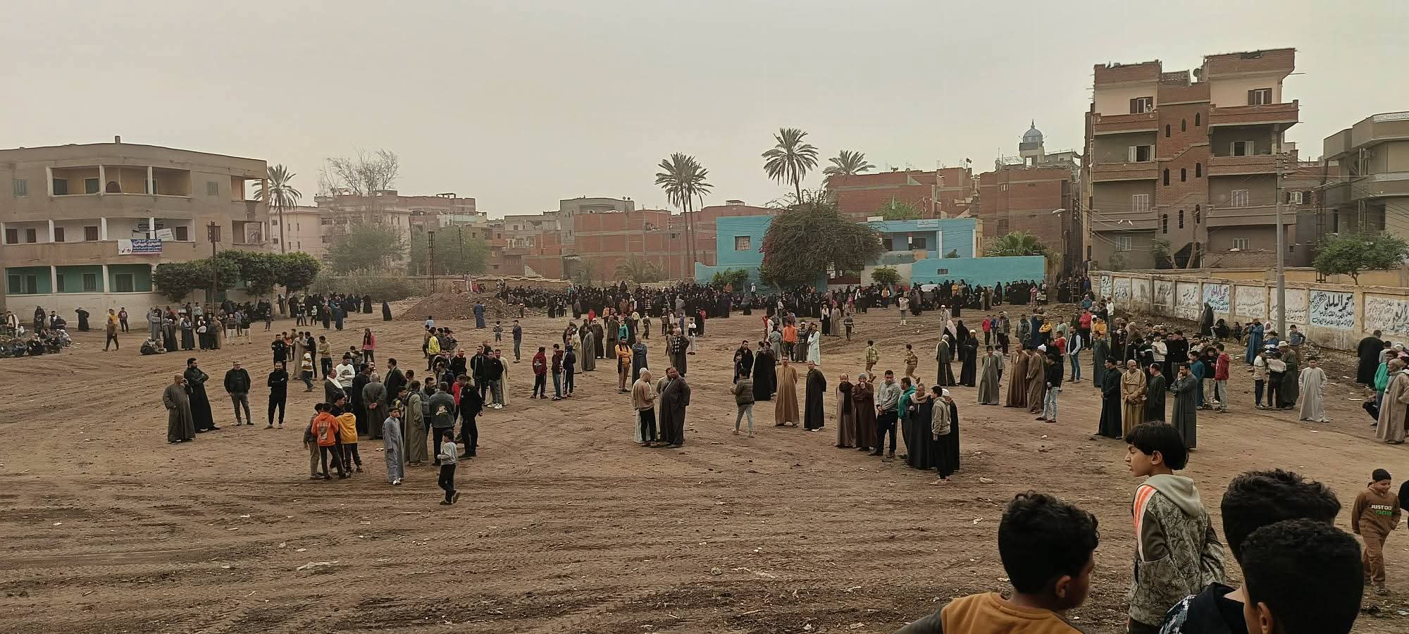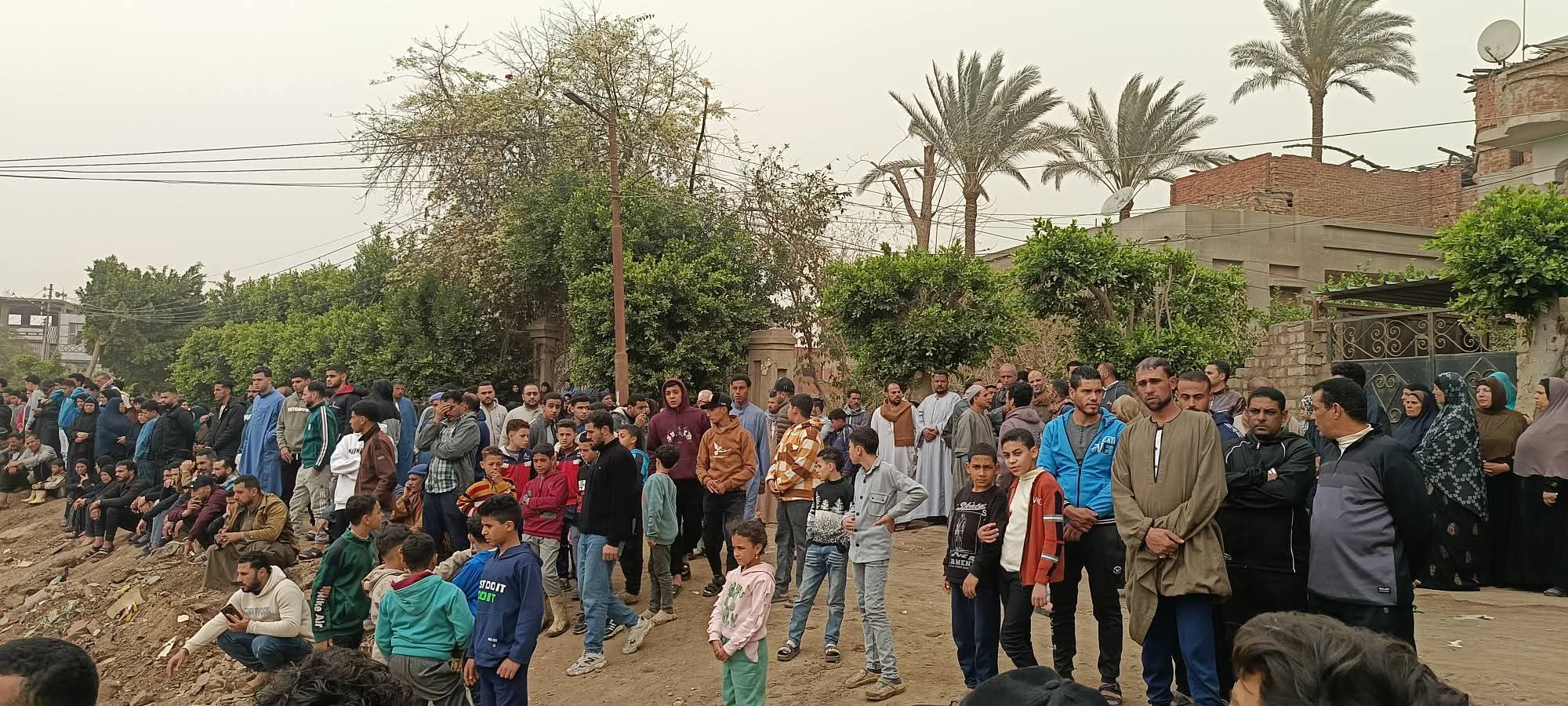 وتجمع أهالي القرية في ملعب القرية انتظارا لوصول الجثامين لتشييعها الي مثواهم الاخير في مقابر الاسر بالقرية.