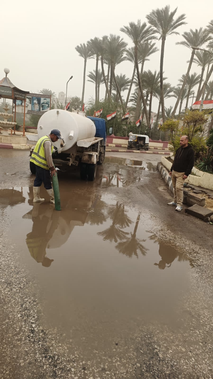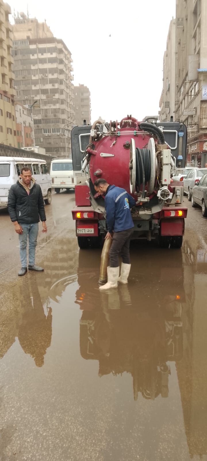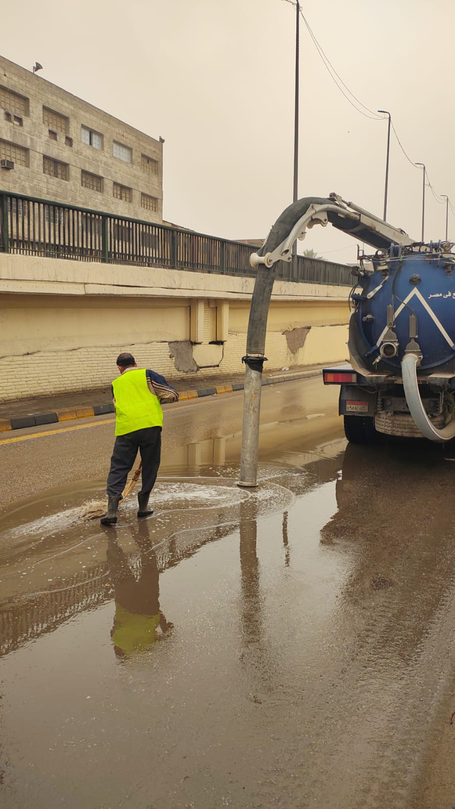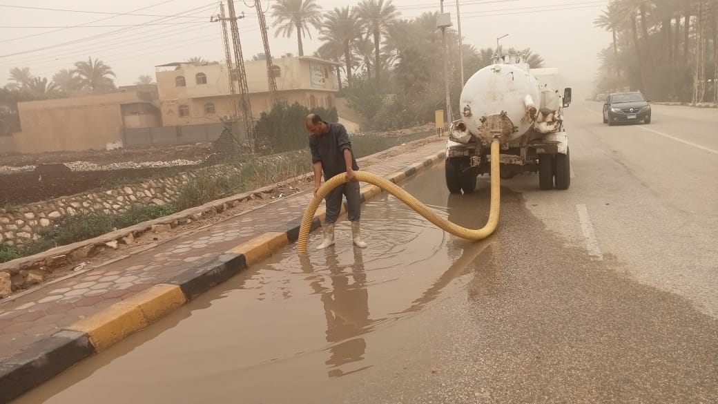 حيث تم الدفع بالمعدات وسيارات الشفط للتعامل الفوري مع تجمعات المياه وتحقيق السيولة المرورية.