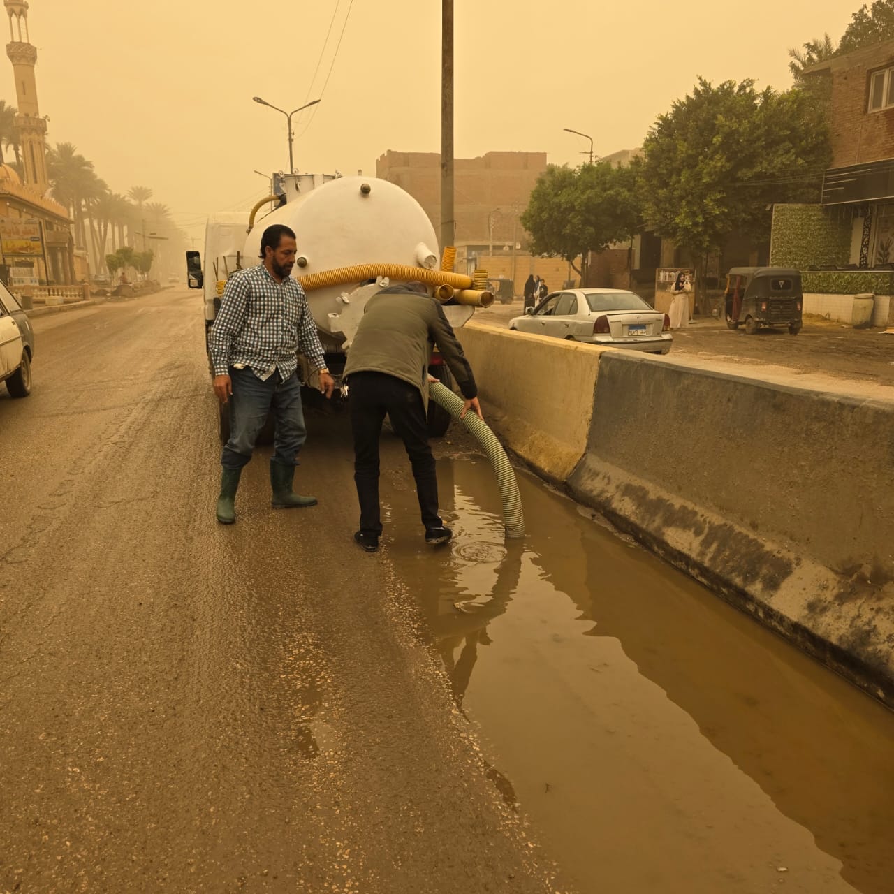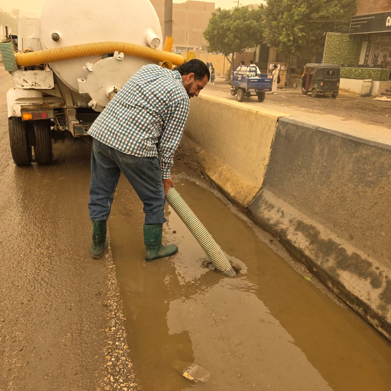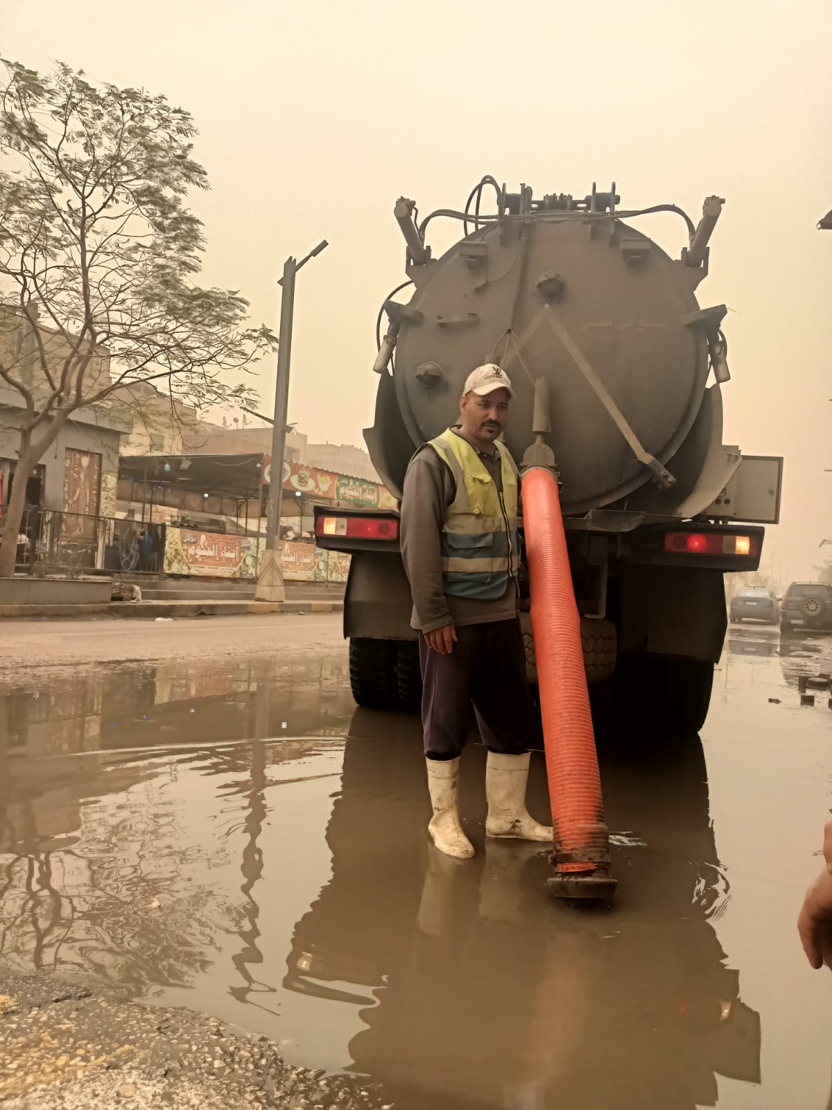 حيث تم الدفع بالمعدات وسيارات الشفط للتعامل الفوري مع تجمعات المياه وتحقيق السيولة المرورية.