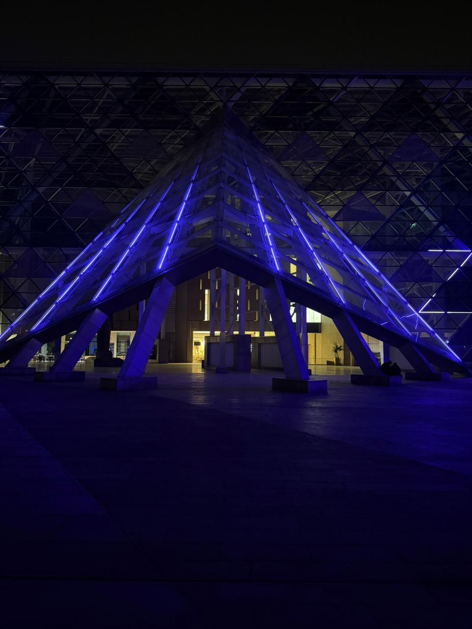 أضاء المتحف المصري الكبير، اليوم الموافق الثاني من أبريل، واجهته باللون الأزرق، وذلك احتفالًا باليوم العالمي للتوعية باضطراب طيف التوحد، في إطار مشاركته في دعم المبادرات المجتمعية والإنسانية، وتعزيز الوعي بقضايا ذوي الهمم.