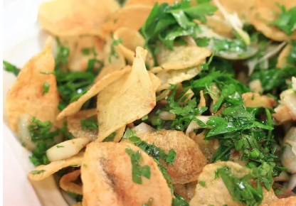 تخلط البطاطس المحمرة مع البصل والبقدونس