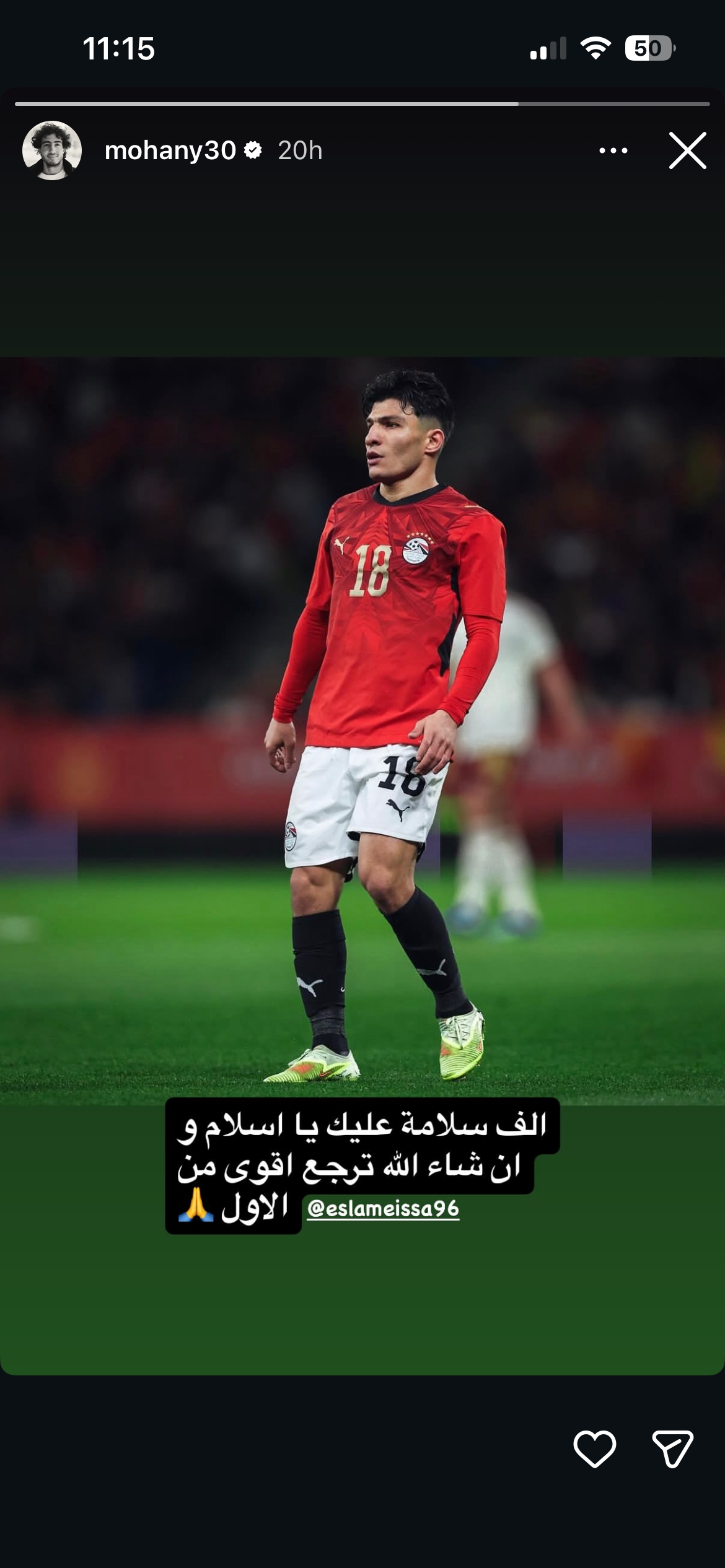 وكتب محمد هاني عبر حسابه على انستجرام: “ألف سلامة عليك يا إسلام وان شاء الله ترجع أقوى من الأول”.