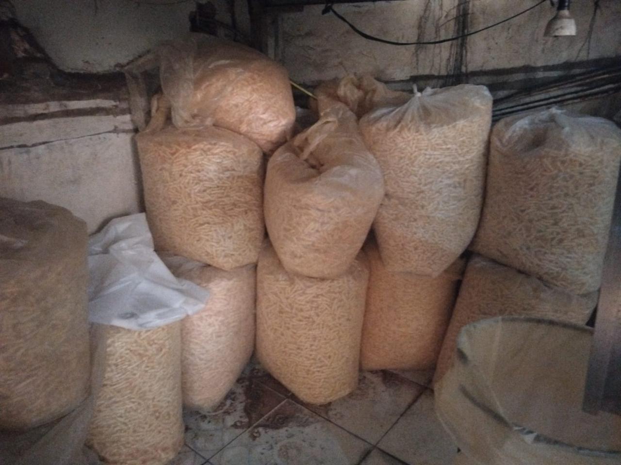 كما تم ضبط كميات من مستلزمات الإنتاج والتعبئة داخل المصنع، شملت بكرات تغليف وكرتونات معدة للتعبئة، في مخالفة صريحة للاشتراطات والقوانين المنظمة.