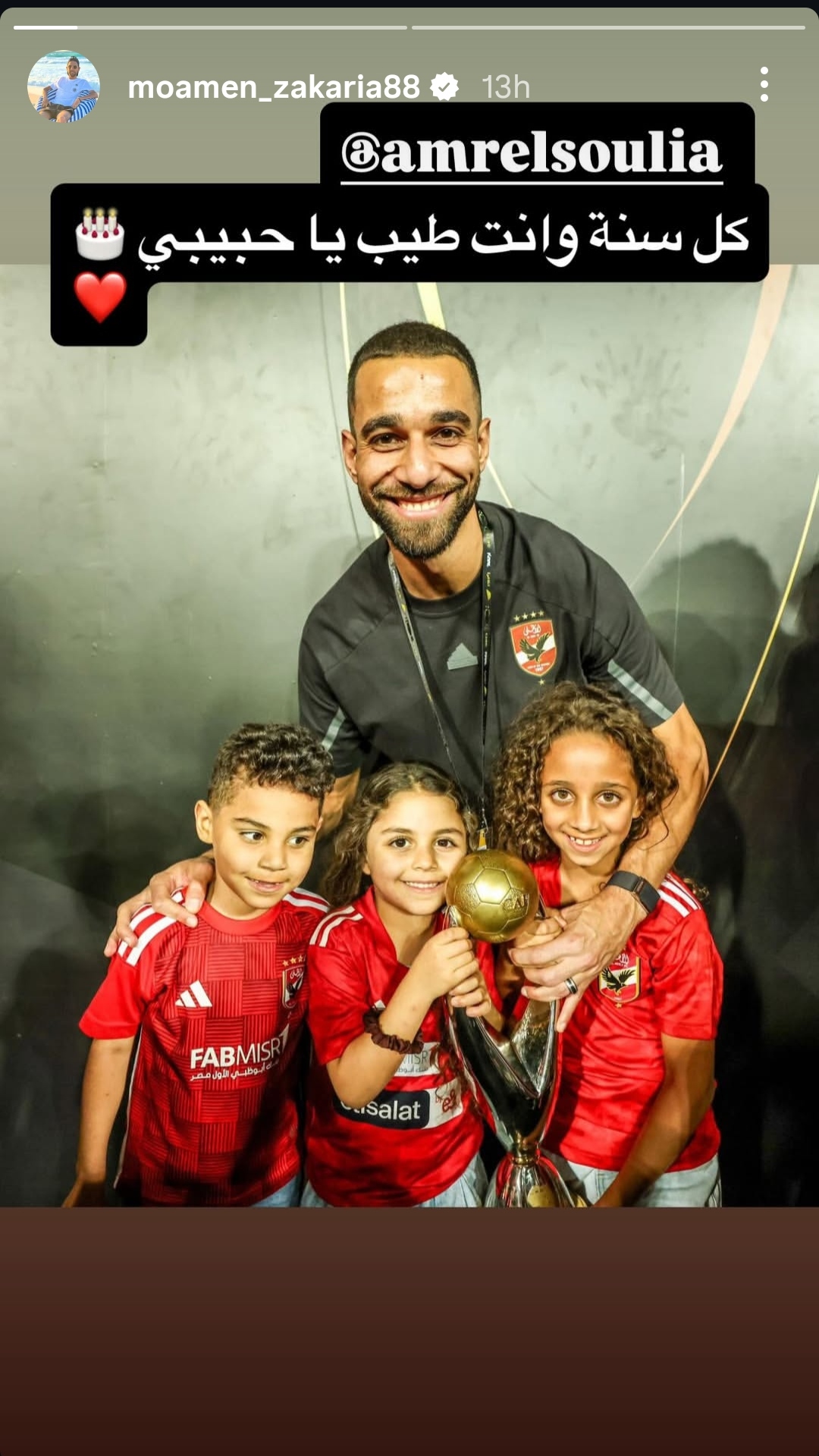 وشارك مؤمن زكريا صور للاعب عمرو السولية برفقة أولاده، وعلق : كل سنه و أنت طيب يا حبيبي.