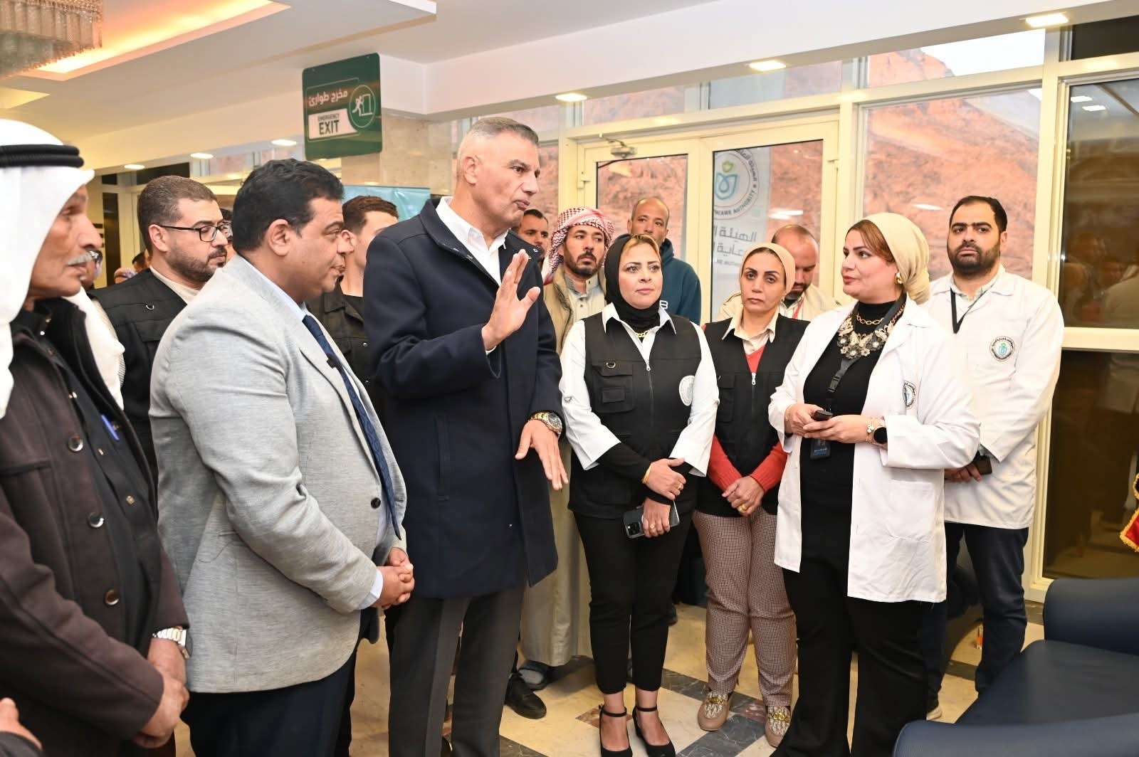 وعلى هامش الفعاليات، أجرى المحافظ جولة تفقدية بمستشفى سانت كاترين المركزي، تفقد خلالها أقسام المستشفى المختلفة، والتي تضم 42 سريرًا وغرفتي عمليات، إلى جانب أقسام الطوارئ، والغسيل الكلوي، والأشعة، والصيدلة. كما اطلع على أحدث أجهزة الأشعة المتوفرة، والتقى بعدد من المرضى، واستمع إلى آرائهم، واطمأن على حالتهم الصحية، موجهًا بسرعة تلبية احتياجاتهم وتحسين مستوى