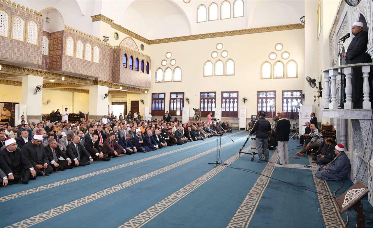 وقد نُقلت شعائر صلاة الجمعة عبر التلفزيون المصري والإذاعة؛ حيث تلا القرآن الكريم الشيخ محمود الخشت، وألقى الخطبة الدكتور محمود عابدين أبو الحسن.