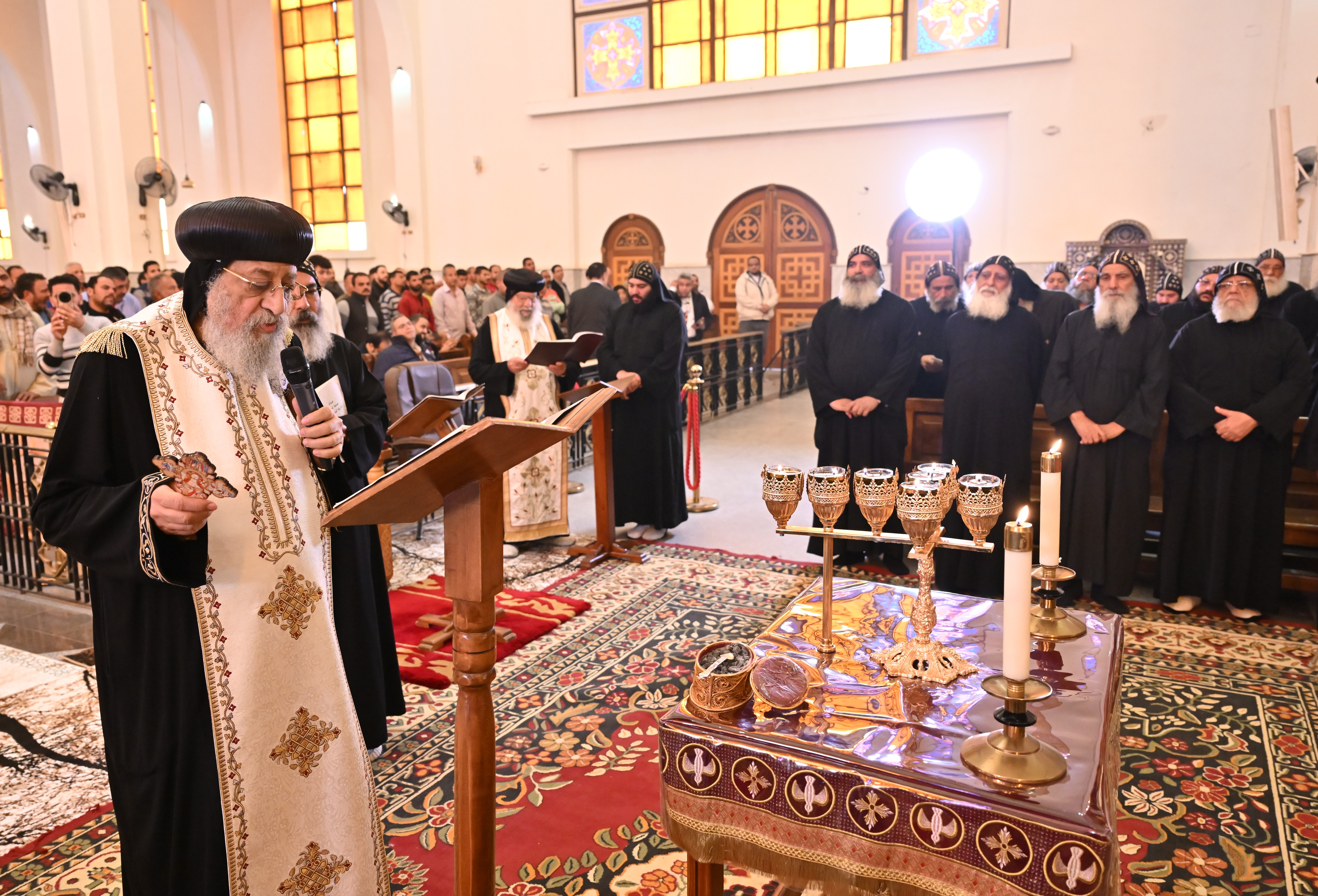 صلى قداسة البابا تواضروس، الثاني صباح اليوم صلوات قداس جمعة ختام الصوم في الكاتدرائية الكبرى بدير القديس الأنبا بيشوي بوادي النطرون بمشاركة نيافة الأنبا أغابيوس اسقف ورئيس الدير، ومجمع رهبانه، إلى جانب أبناء الكنيسة من زوار الدير.