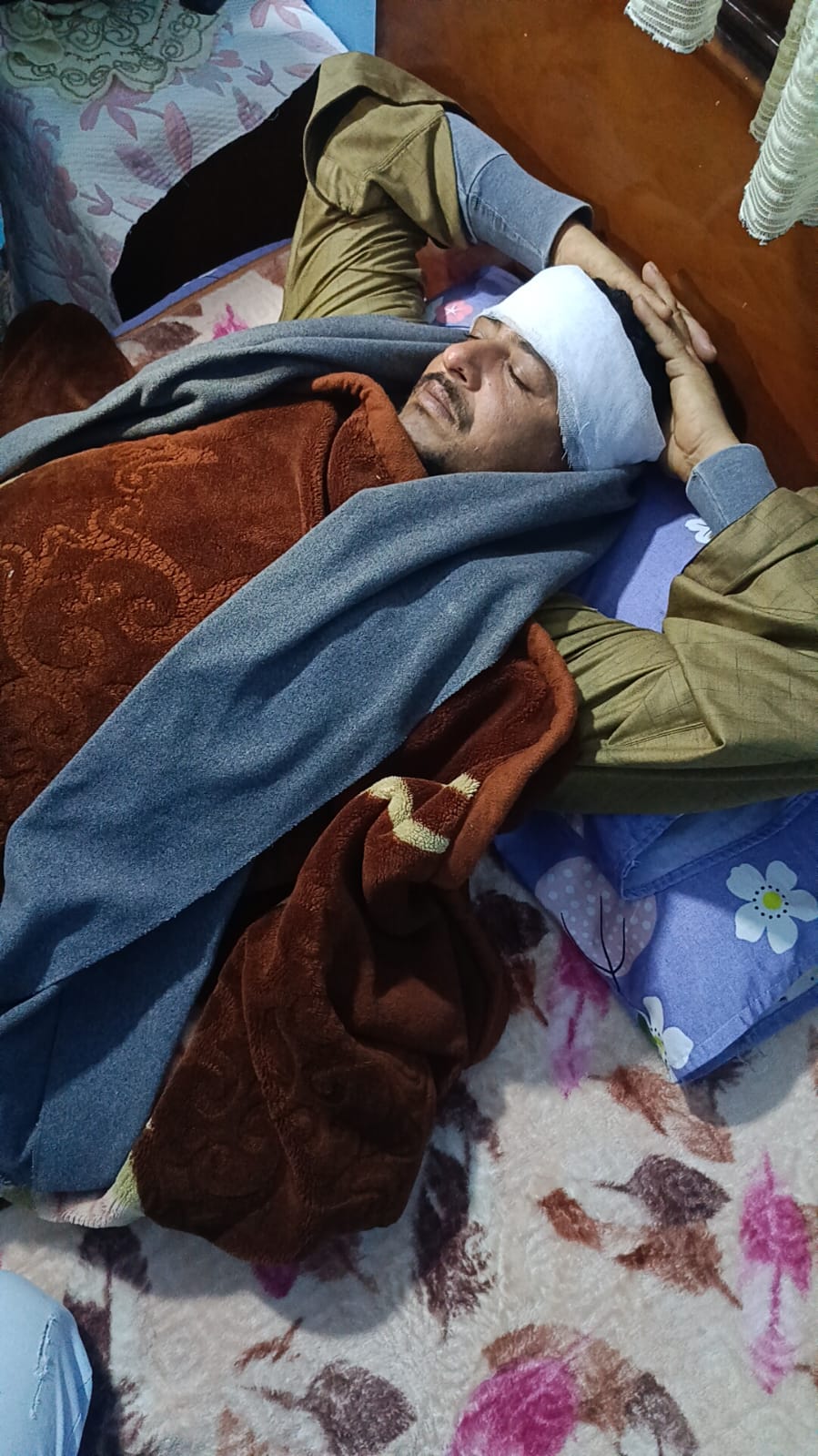 خرج مصدوما من المستشفي غير مصدقا لما حدث من وفاه اصدقاءه اثناء عودتهم من العمل في حادث ماساوي علي طريق السادات ليلقي 9 عمال مصرعهم في تصادم بين سيارتين جامبو واخري ربع نقل.