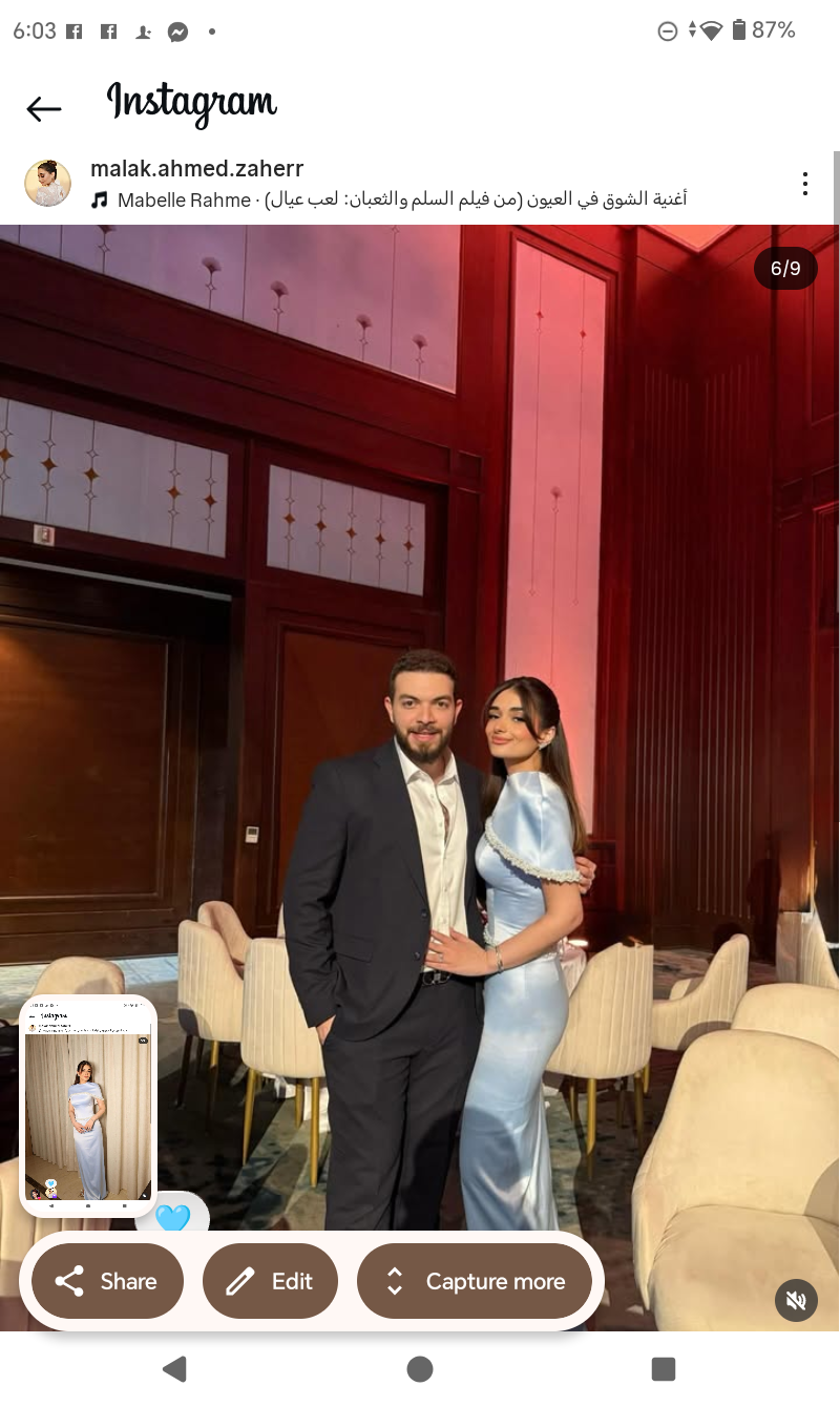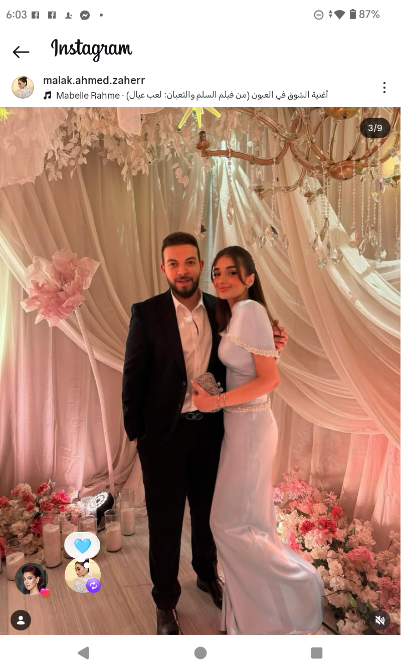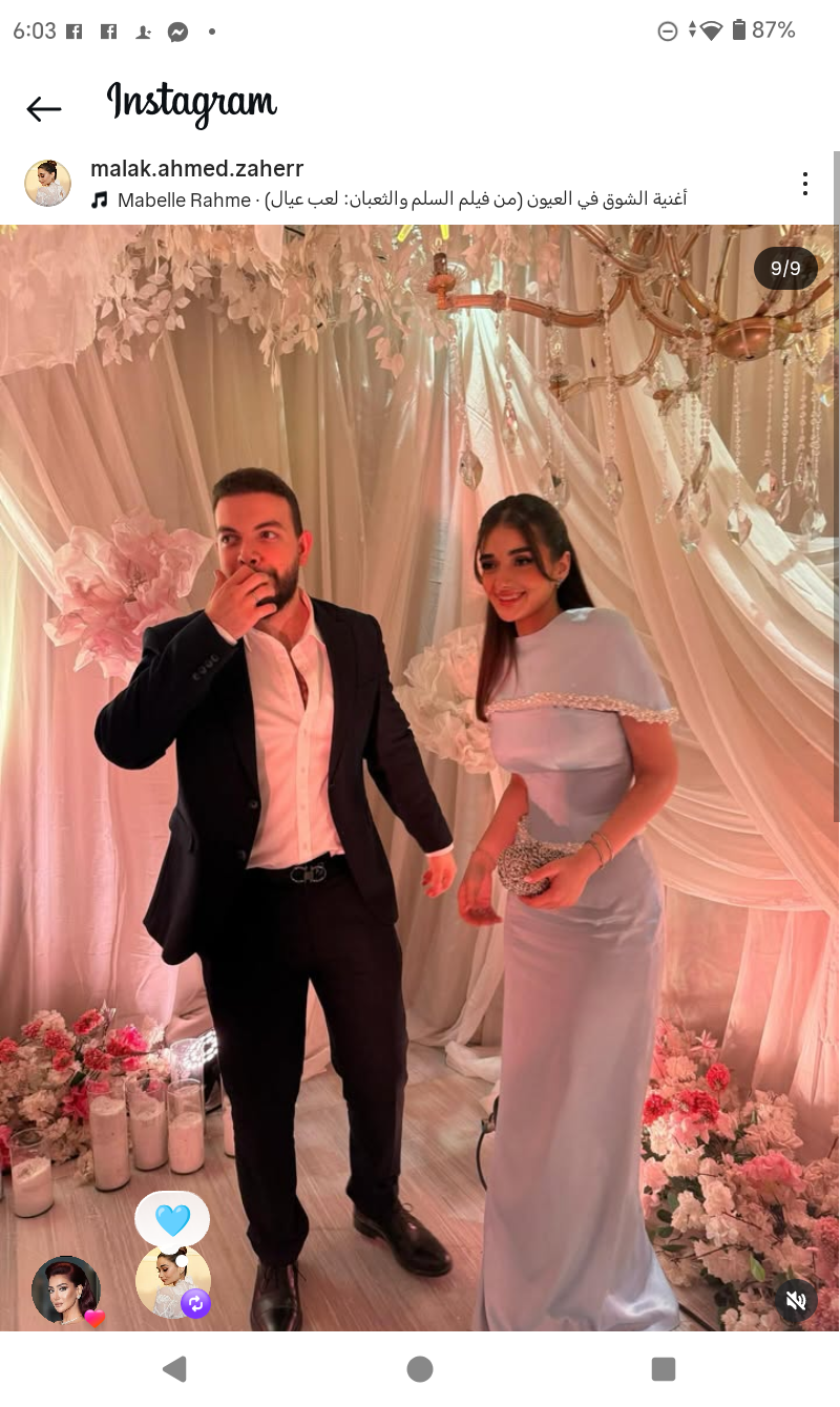 وظهرت ملك أحمد زاهر في الصور رفقة خطيبها في أحدث ظهور من أحد الأفراح.