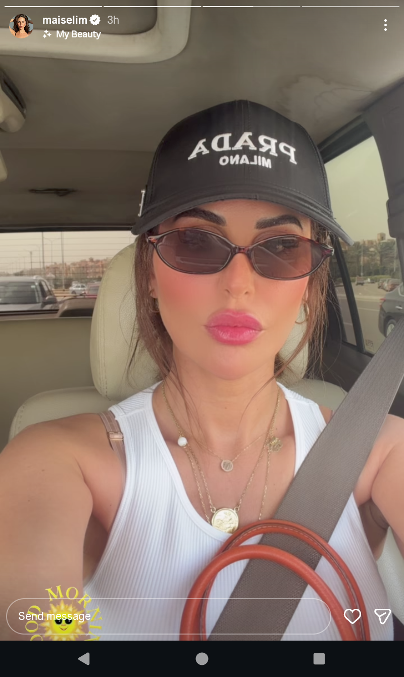 وتألقت مي سليم بلوك كاجوال من داخل سيارتها، نال اعجاب متابعيها وتفاعلوا معاها بوضع القلوب الحمراء.