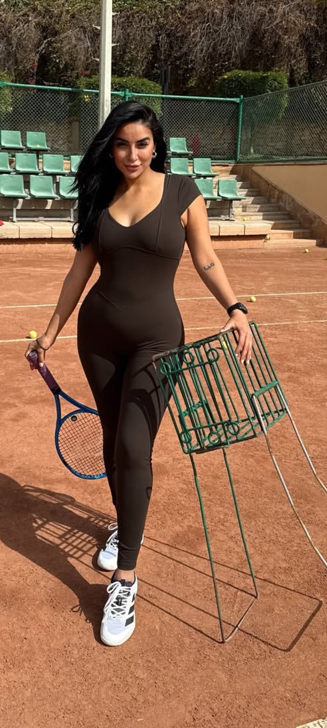 وظهرت جوري بكر، مرتديه جمبسوت رياضي باللون البني ليكشف عن جمالها ورشاقتها.