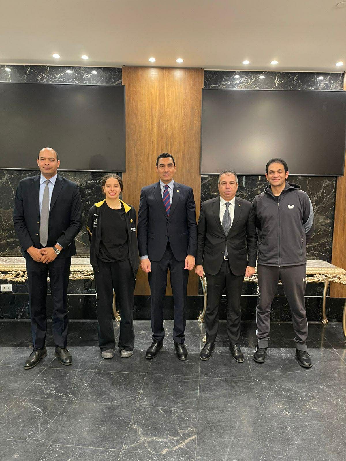 استقبل وزير الشباب والرياضة لاعبة المنتخب المصري لتنس الطاولة هنا جودة، وذلك بحضور رئيس الاتحاد المصري لتنس الطاولة، اللواء أشرف حلمي، عقب تحقيقها إنجازًا تاريخيًا بالتأهل إلى الدور ربع النهائي لبطولة كأس العالم للسيدات لتنس الطاولة في الصين.