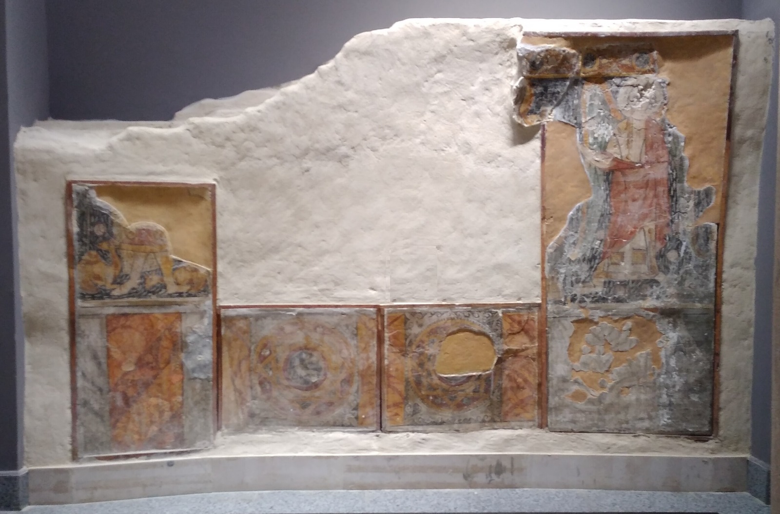 المتحف اليوناني الروماني بالإسكندرية: يعرض رسمًا جداريًا منفذًا بتقنية الفريسكو (الجص الملون)، يتضمن زخارف وصورًا دينية، من بينها مشهد للقديس مينا بين الجملين، إلى جانب قديس آخر محاط بهالة من النور، في تجسيد فني مميز للفن القبطي المبكر.