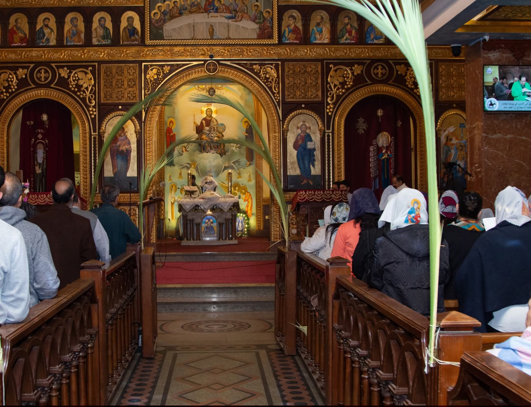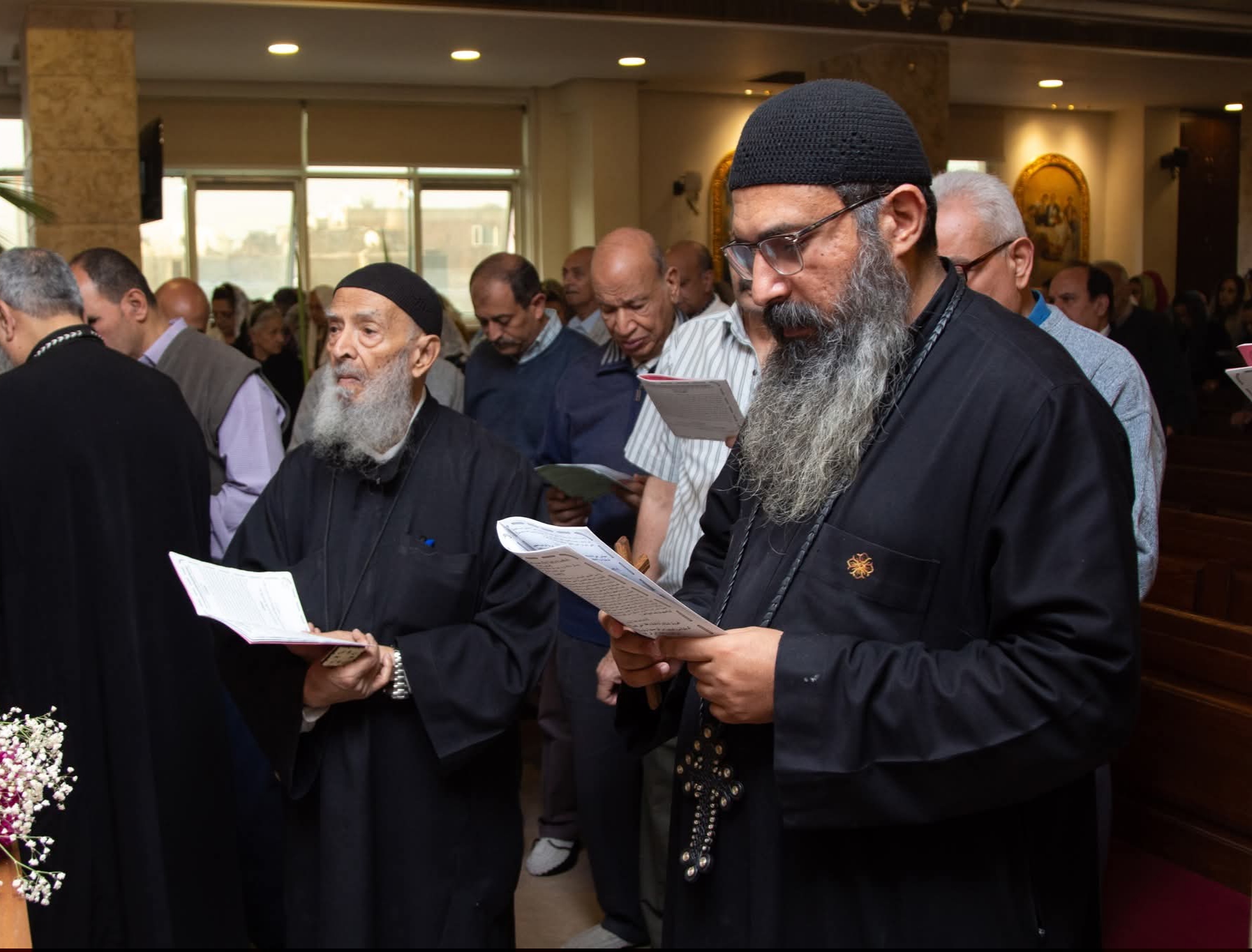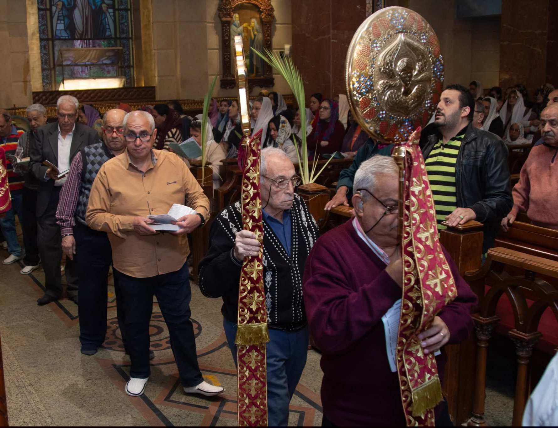 أُقيم داخل الكنيسة طقس “دورة الشعانين” للكهنة والشمامسة حاملين الصلبان والسعف، مرددين ترانيم خاصة بالمناسبة، كما تميز الاحتفال بالمشاركة الواسعة من الأقباط والأطفال الذين يحملون السعف ويزينون الكنيسة.
