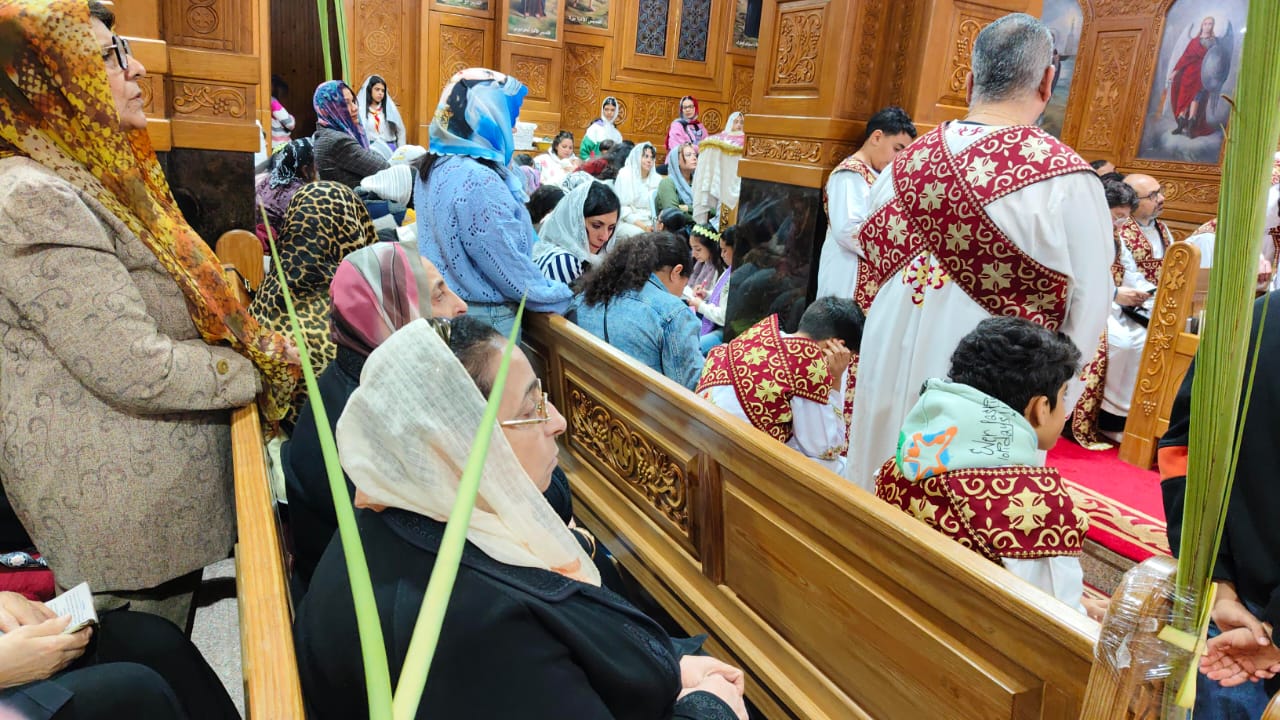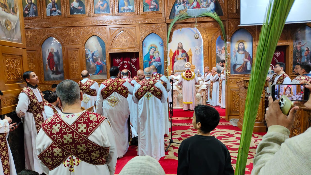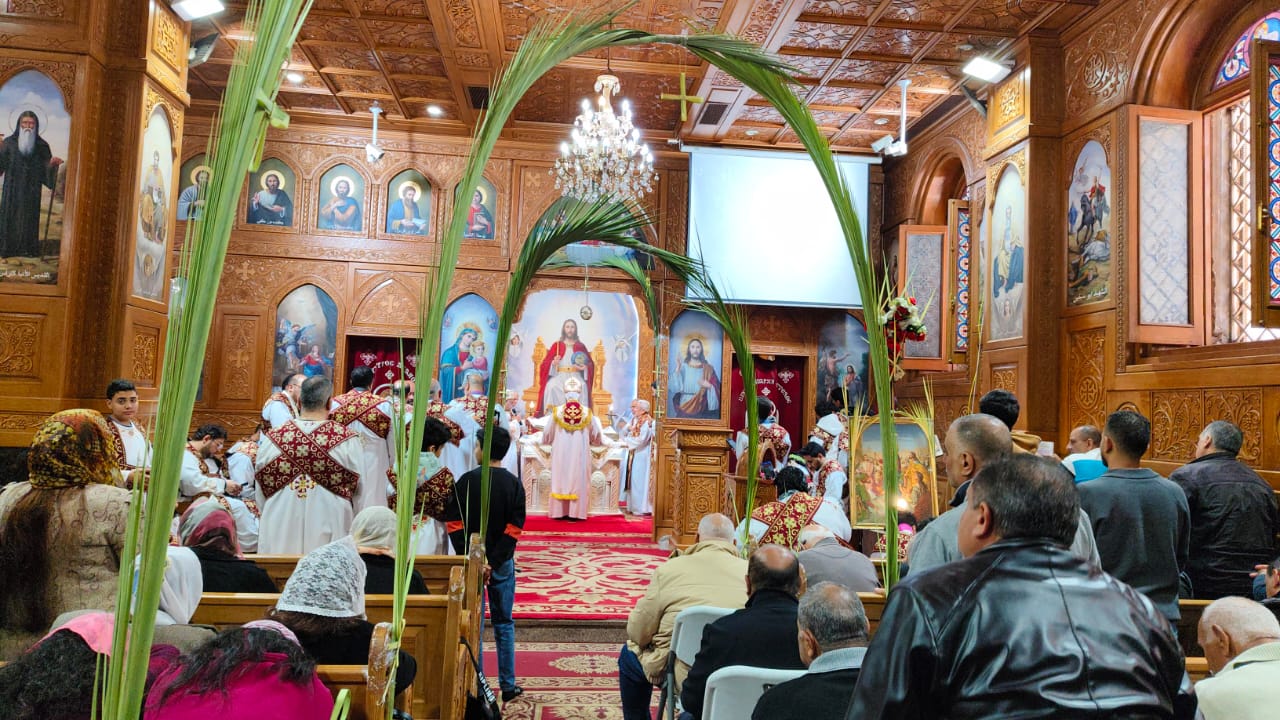 وشهدت الكنيسة حالة من البهجة والفرحة بين المصلين، الذين اصطحبوا معهم سعف النخيل وأغصان الزيتون، وقاموا بتشكيلها في أشكال مختلفة مثل الصلبان والتيجان، في تقليد يعبر عن الاحتفال بدخول السيد المسيح إلى أورشليم، فيما علت الترانيم والألحان الكنسية أجواء القداس.