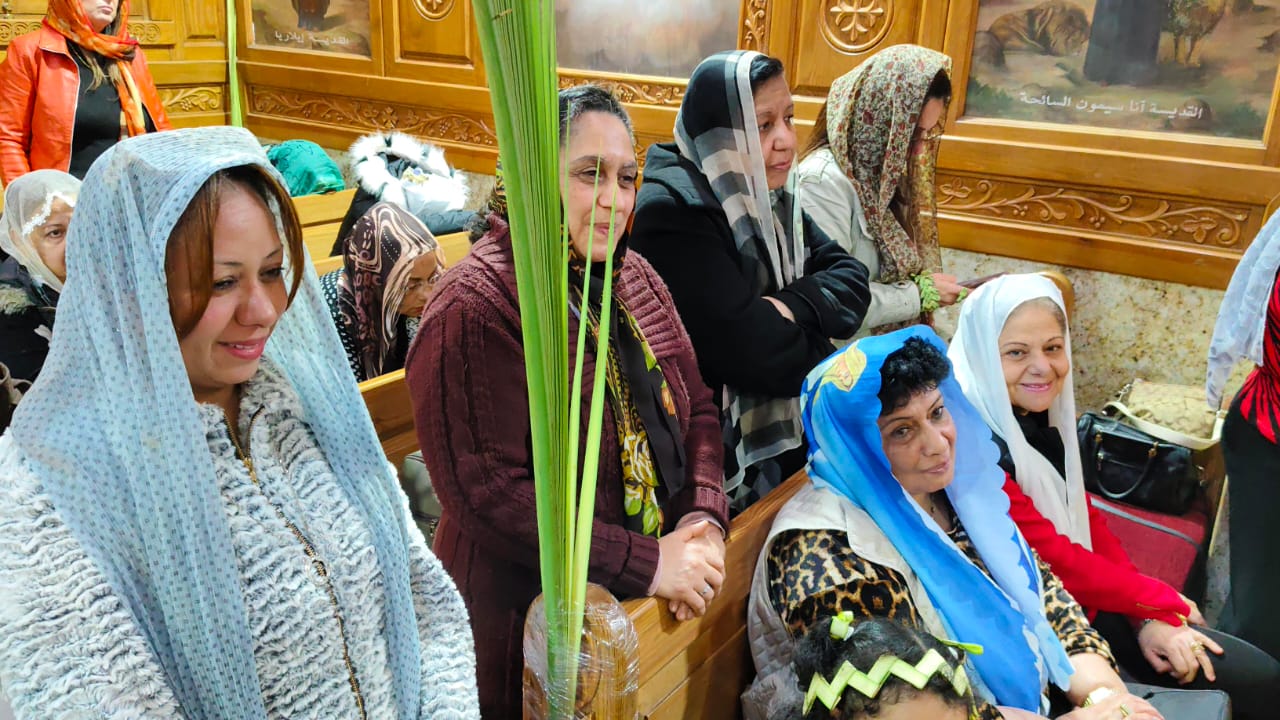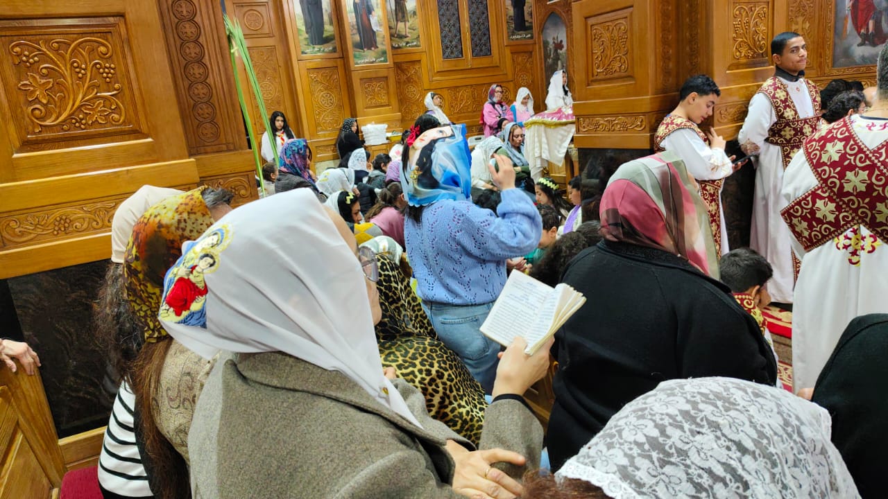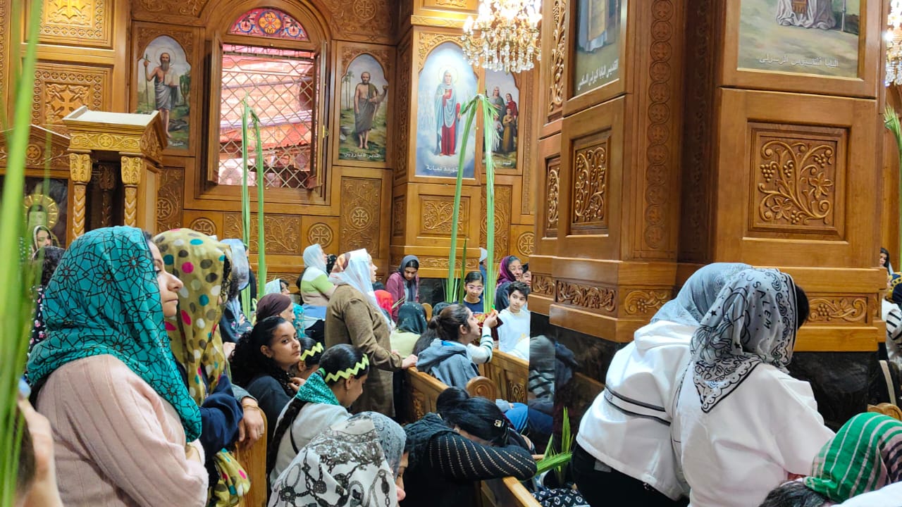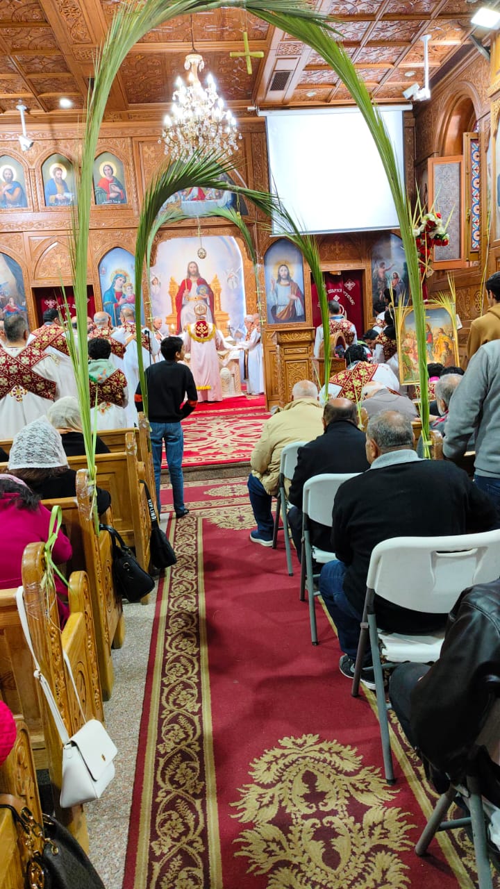 وشهدت الكنيسة حالة من البهجة والفرحة بين المصلين، الذين اصطحبوا معهم سعف النخيل وأغصان الزيتون، وقاموا بتشكيلها في أشكال مختلفة مثل الصلبان والتيجان، في تقليد يعبر عن الاحتفال بدخول السيد المسيح إلى أورشليم، فيما علت الترانيم والألحان الكنسية أجواء القداس.