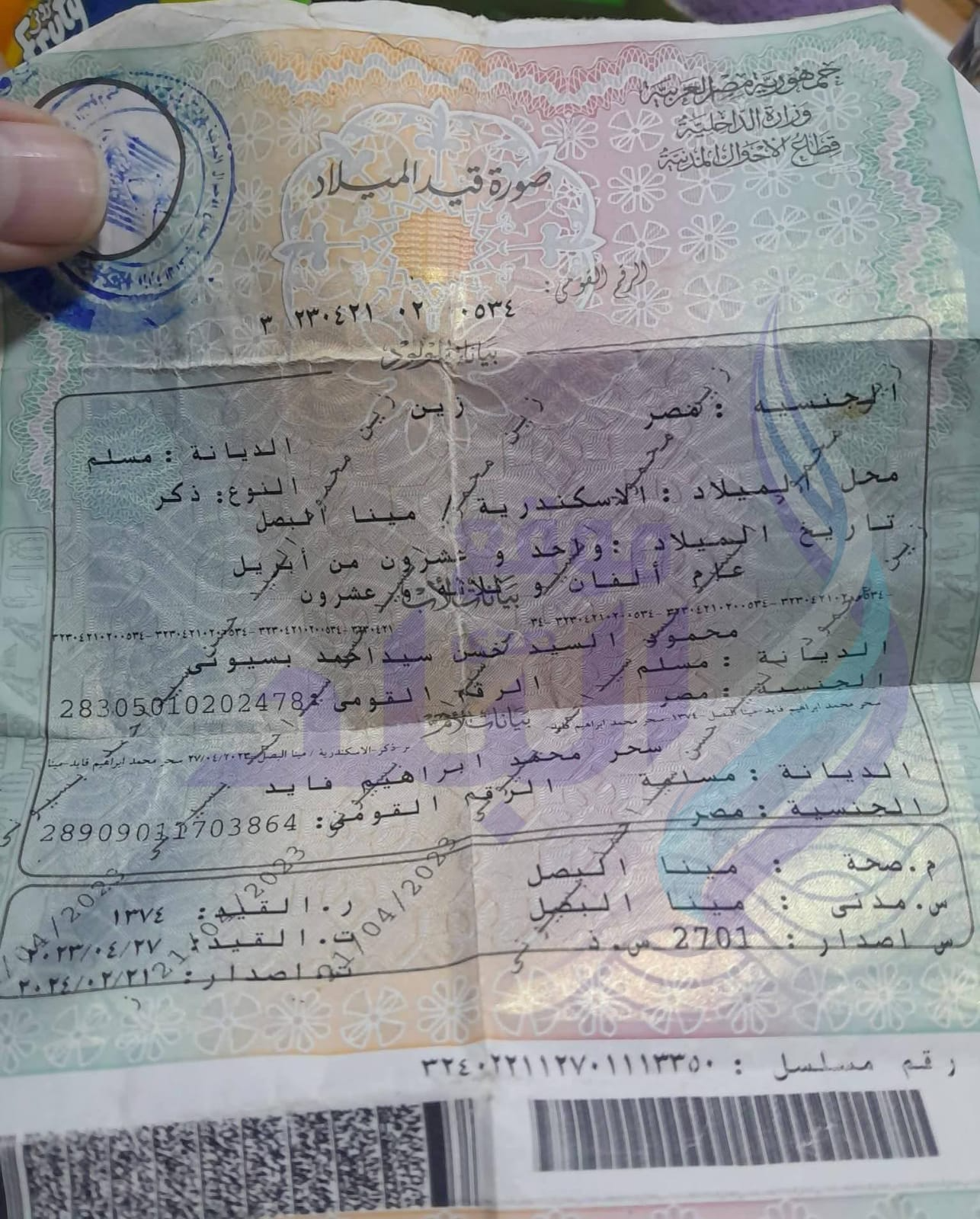 ومع تصاعد التفاعل، حصل “صدى البلد” على مستندات رسمية، شملت شهادة ميلاد الطفل وصورة بطاقة الرقم القومي لوالده، لتكشف جانبًا مغايرًا تمامًا لما تم تداوله، وتؤكد أن الطفل زين ليس مختطفا وأنه ابن السائق.