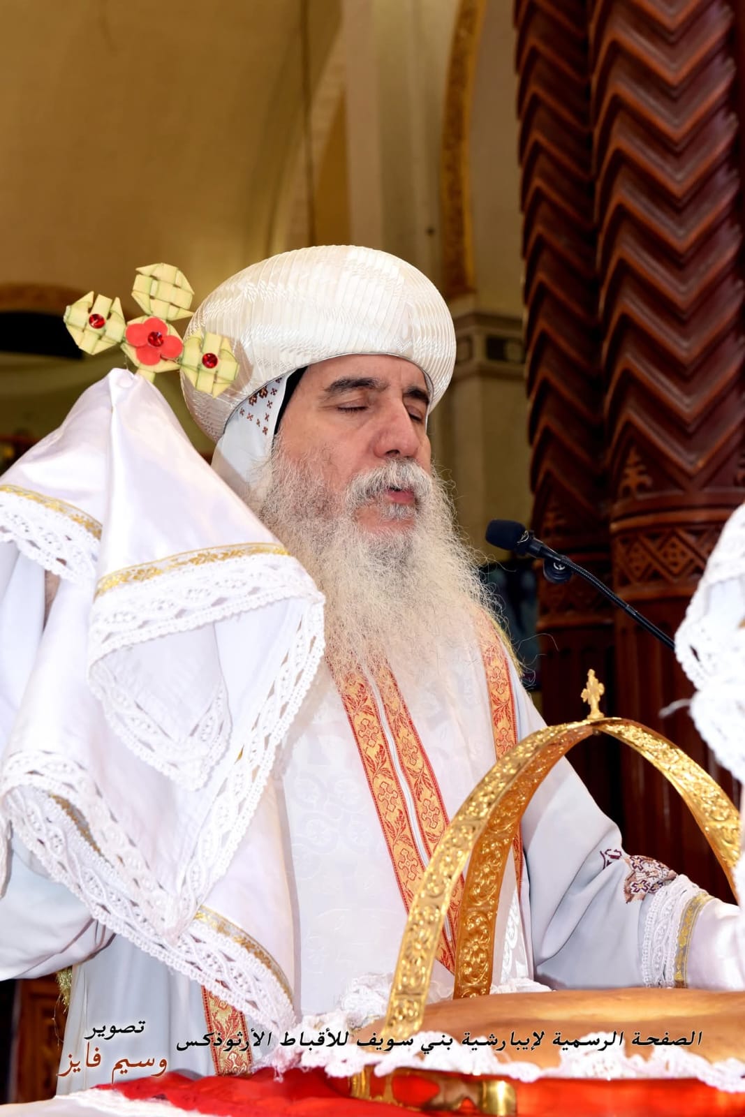 وترأس الأنبا غبريال أسقف بني سويف، قداس عيد أحد الشعانين بكاتدرائية الشهيد العظيم مارمينا بشرق النيل وبمشاركة الآباء كهنة الكنيسة ووسط حضور كبير من شعب الكنيسة رافعين الورود وأغصان الزيتون وقلوب جريد النخيل تعبيرا عن فرحتهم بهذه المناسبة السعيدة، مطالبًا الأقباط في محافظة بني سويف برفع قلوبهم ضارعبن الي الله أن يحافظ على بلادنا الحبيبة مصر ويعم الاستقرار والرخاء ربوع بلادنا الحبيبة مصر.