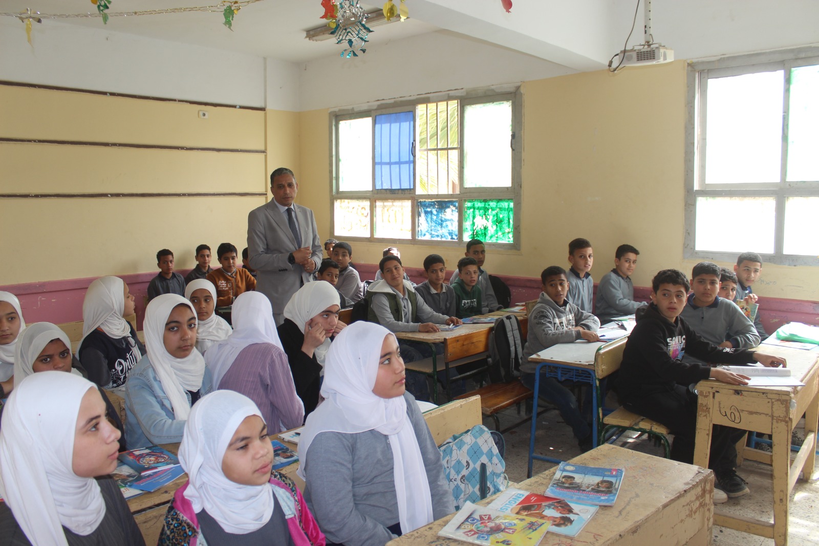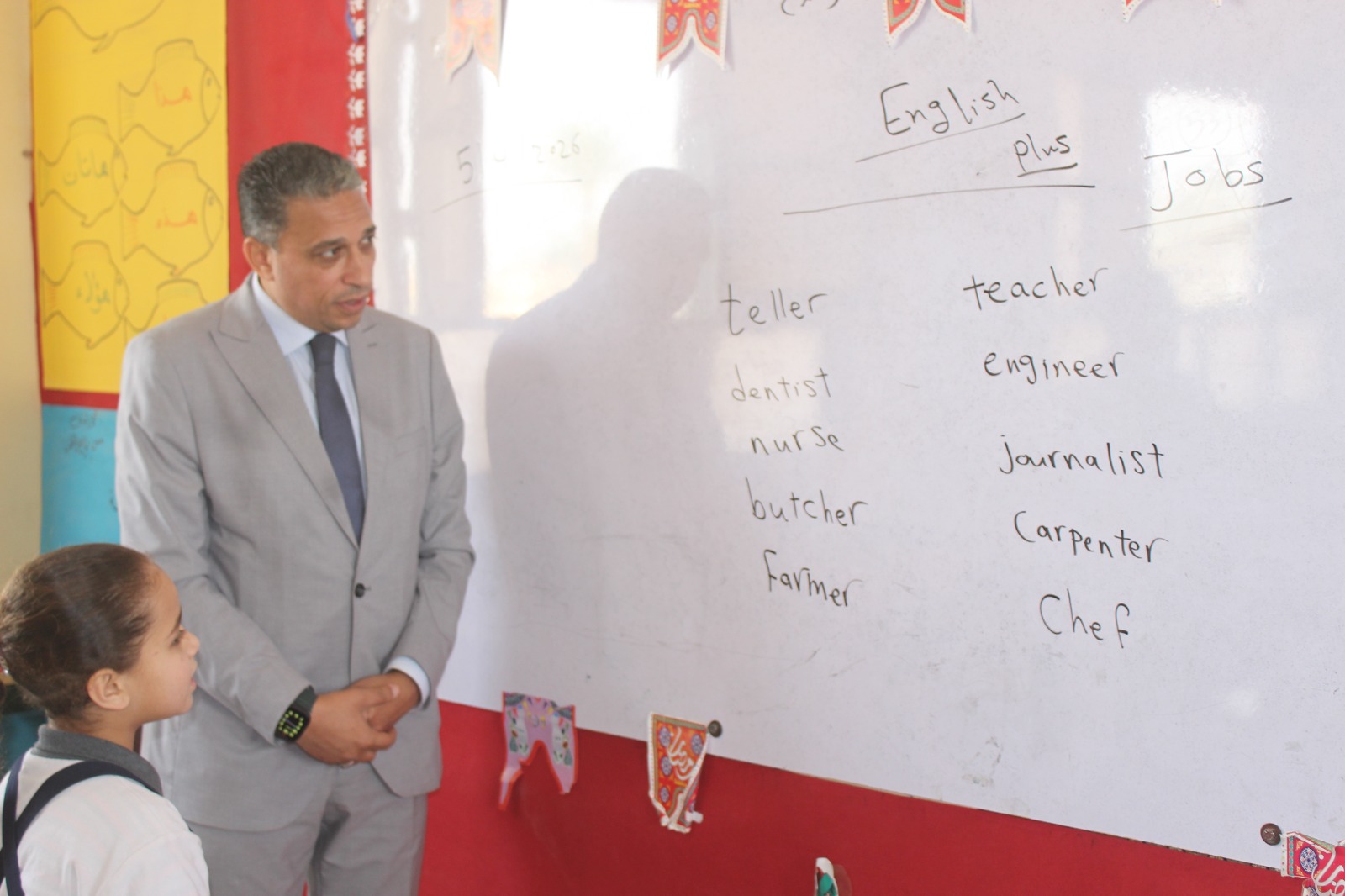 واستكمل جولته بإدارة الصف التعليمية، حيث تفقد مدرسة أبو بكر الصديق الابتدائية، ومدرسة الصف الثانوية الصناعية للتأسيس العسكري.
