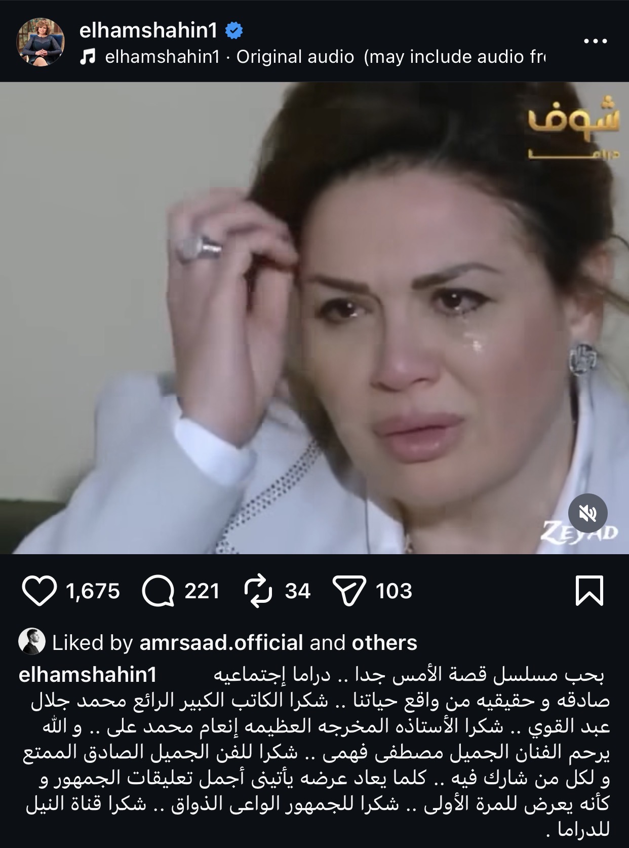 وكتبت إلهام شاهين عبر حسابها على موقع التواصل الاجتماعي إنستجرام: “بحب مسلسل قصة الأمس جدا.. دراما اجتماعية صادقة وحقيقية من واقع حياتنا”.