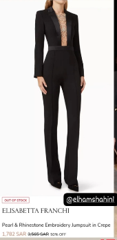 قد حمل جمبسوت إلهام شاهين في الحفل توقيع دار الأزياء العالمية elisabetta franchi، وبلغ سعره ما يقرب من 95 ألف جنيه مصري مما أثار الدهشة بين متابعيها على السوشيال ميديا.