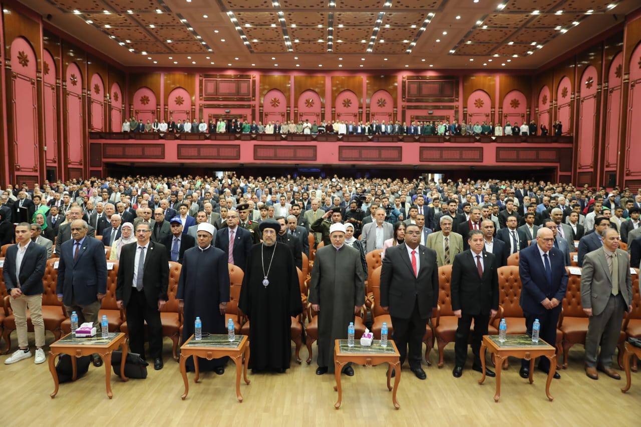 واستهل المؤتمر بآيات من القرآن الكريم تلاها الدكتور محمد عبد الرحمن، عضو هيئة التدريس بالكلية، ثم السلام الوطني لجمهورية مصر العربية، وفيلم تسجيلي حول مسيرة الكلية على مدار عدة عقود.