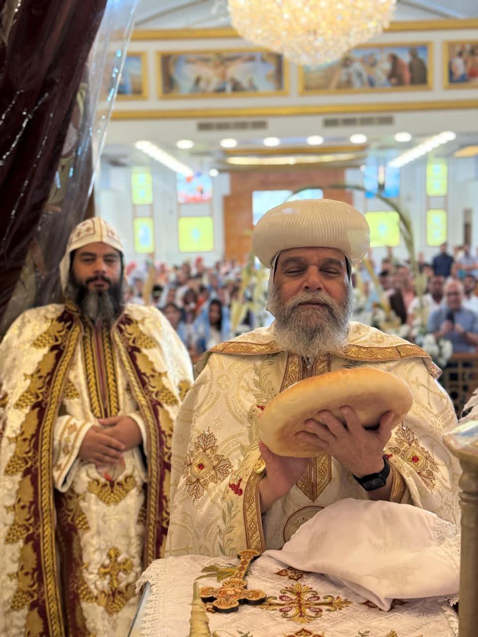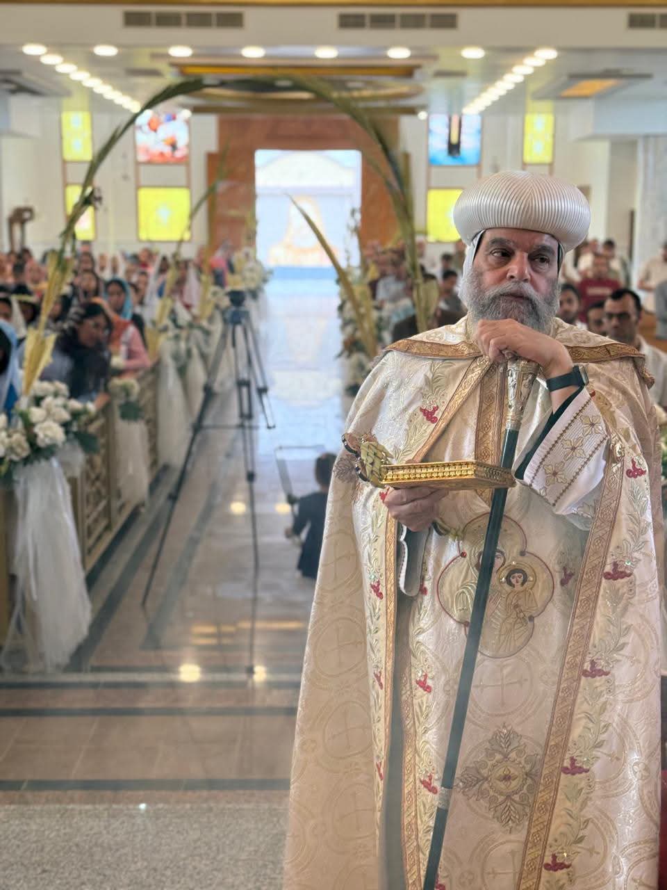 وخلال القداس الإلهي، قام نيافته بتدشين عدد من أواني المذبح، في خطوة تعكس الاهتمام المستمر بتطوير الخدمة الكنسية وتهيئة الكنيسة لاستقبال المناسبات الروحية والطقسية، بما يليق بقدسية المكان وأهميته. ويعد عيد أحد الشعانين من أبرز الأعياد في الكنيسة، إذ يحيي ذكرى دخول السيد المسيح إلى أورشليم، حيث استقبله الشعب بسعف النخيل وأغصان الزيتون، في تعبير عن الفرح والترحيب، وهو ما تحرص الكنيسة على إحيائه سنويًا بطقوس مميزة وألحان خاصة.