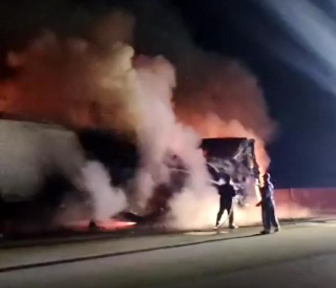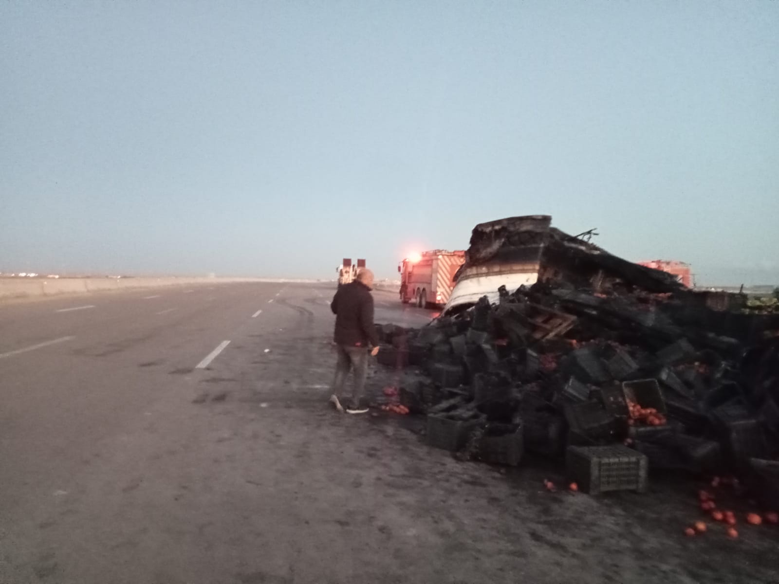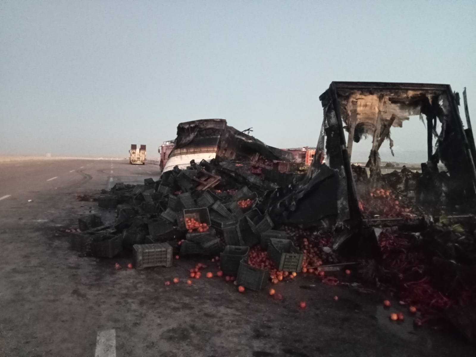 وتلقت الأجهزة الأمنية إخطارًا باندلاع النيران في شاحنة أثناء سيرها على الطريق، وعلى الفور انتقلت قوات الحماية المدنية إلى موقع الحادث، وتم الدفع بسيارات الإطفاء التي نجحت في السيطرة على الحريق ومنع امتداده للمناطق المجاورة دون تسجيل أي إصابات بشرية.