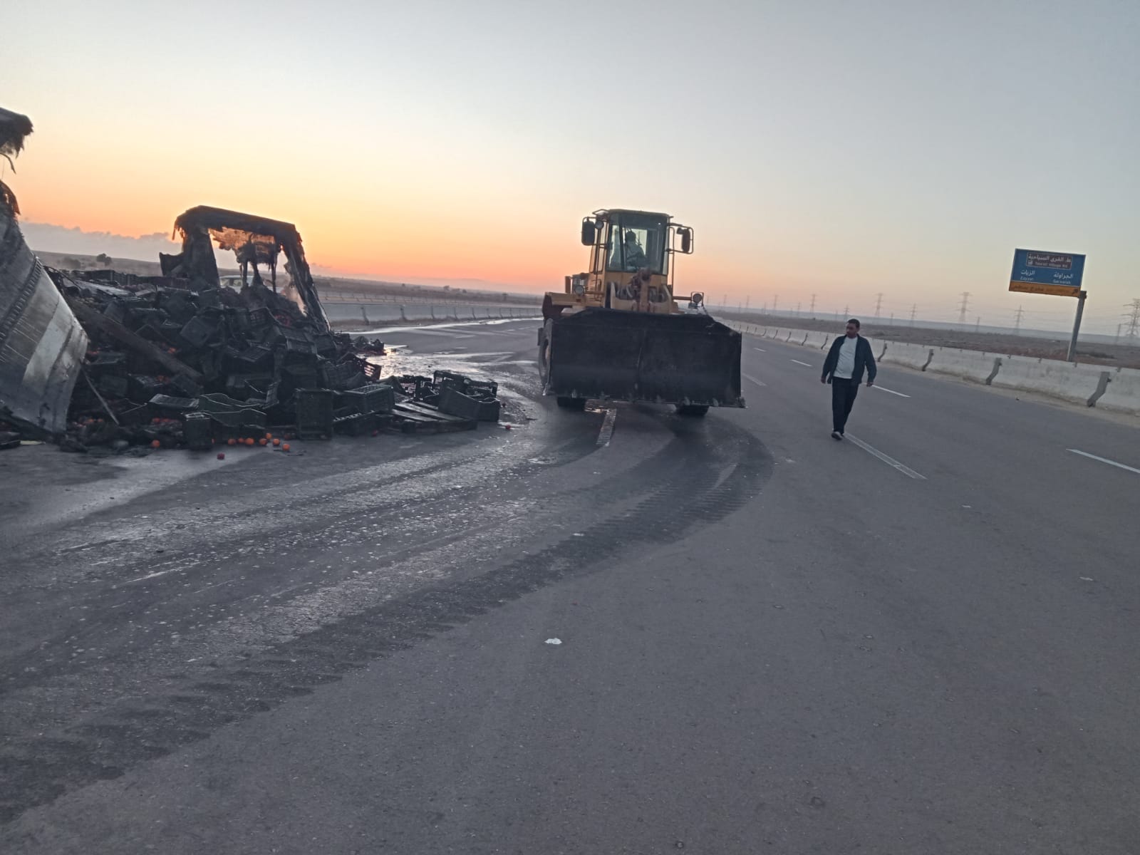 يأتي ذلك تنفيذًا لتوجيهات اللواء دكتور محمد الزملوط محافظ مطروح بمتابعة فتح الطريق الدولي الساحلي بعد حادث اشتعال سيارة نقل ثقيل بمقطورة محملة بالخضروات وتم فتح الطريق بالكامل أمام الحركة المرورية والتعامل مع الحادث.