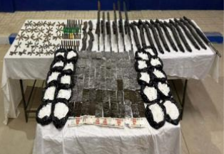 (قرابة 600 كيلو جرام مواد مخدرة متنوعة "حشيش ، إستروكس , شابو ، هيدرو" – أكثر من 2,5 مليون قرص مخدر ومنشط – 106 قطعة سلاح نارى "37 بندقية آلية، 48 بندقية خرطوش ، 19 فرد خرطوش، 2 طبنجة") .