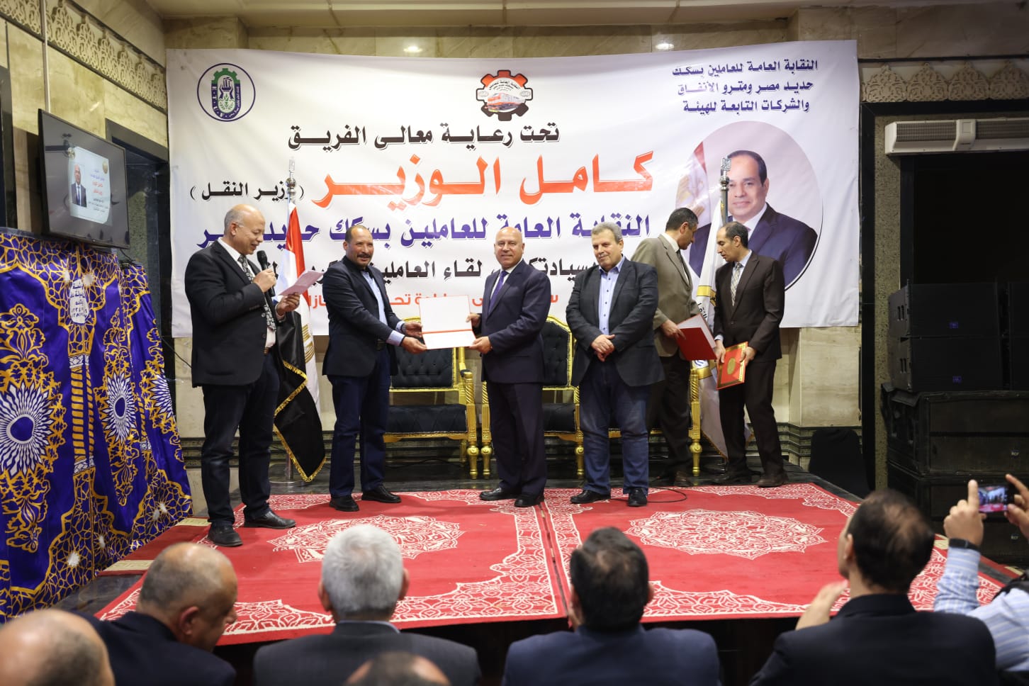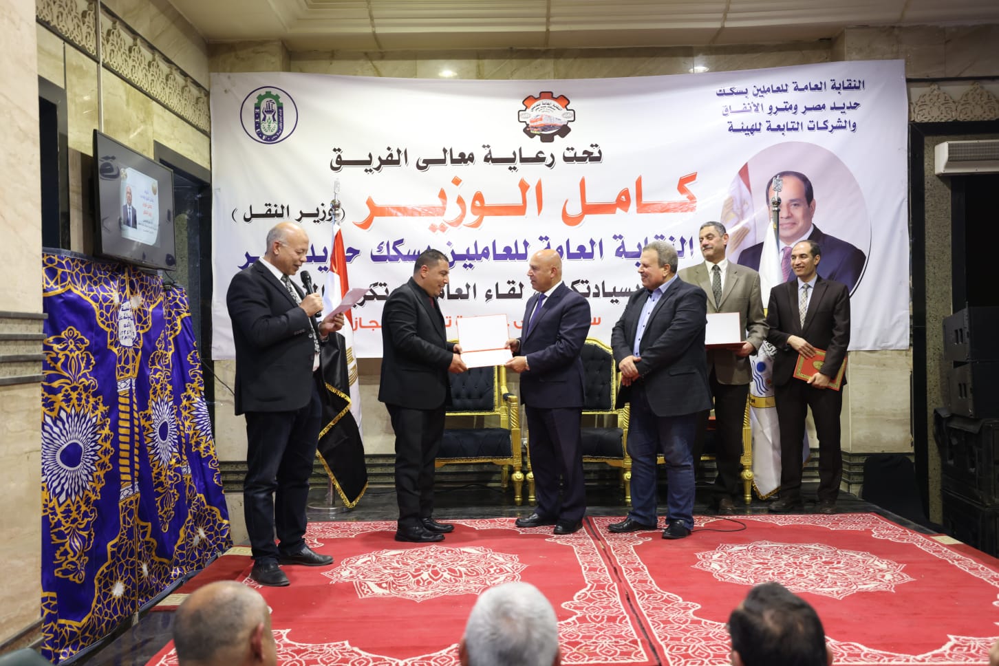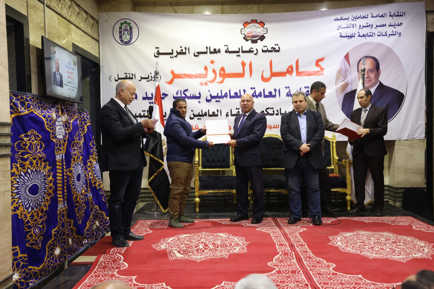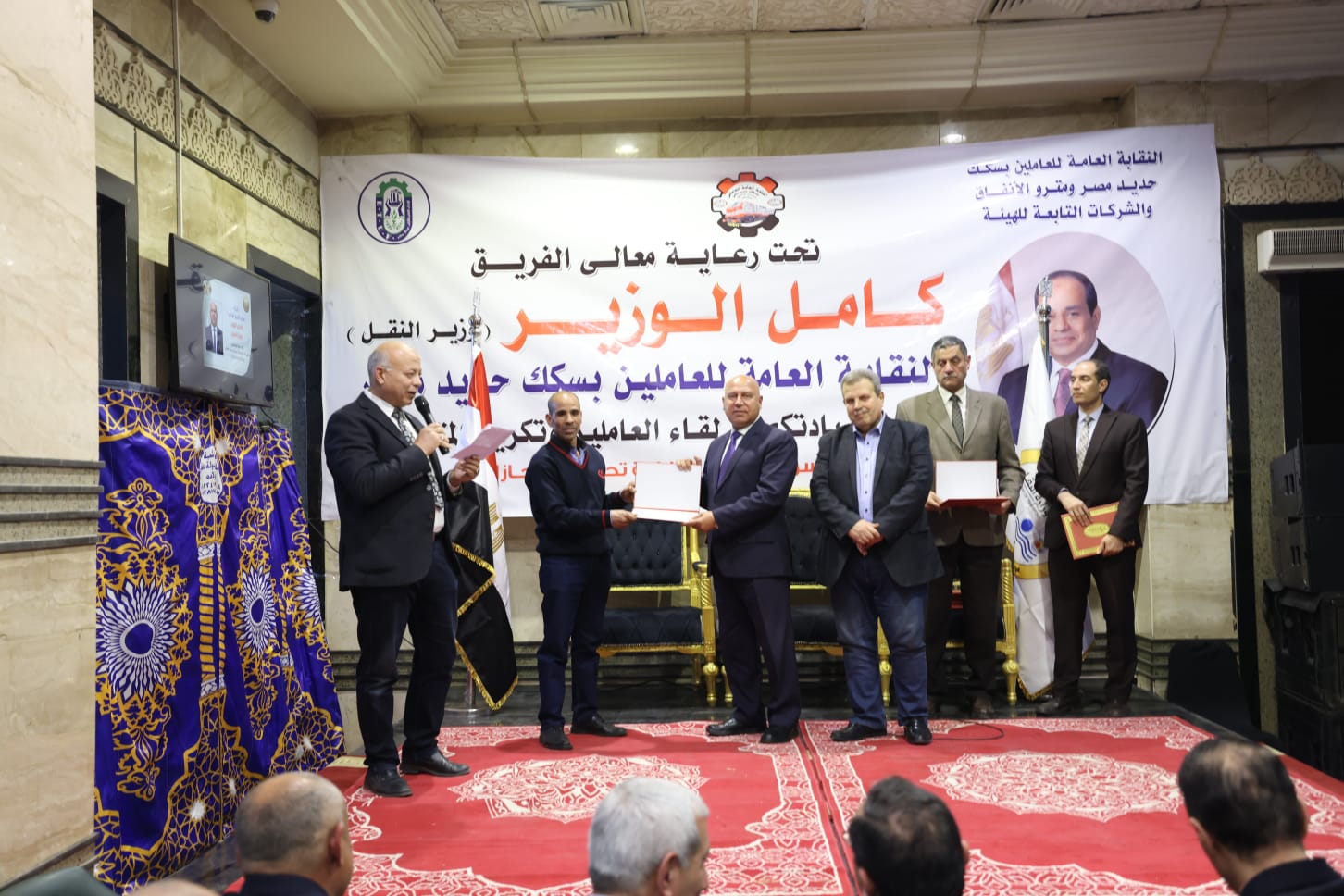 وفي ختام الاجتماع وفي إطار الاهتمام الكبير الذي توليه وزارة النقل بالعنصر البشري بالسكة الحديد باعتباره احد اهم عوامل نجاح المنظومة قام المهندس كامل الوزير بتكريم 22 من العاملين بالهيئة سواء من قائدي القطارات ، أو فنيي الحركة ،أو مشرفي القطارات أوخفراء المنافذ أو نظار المحطات والعاملين من طوائف التشغيل بمختلف القطاعات، وذلك تقديرًا لما اظهروه من احترافية وكفاءة عالية في منع وقوع حوادث ، و في رصد و احتواء المواقف الطارئة وسرعة التعامل معها والحد من تداعياتها المحتملة وفقا لإجراءات السلامة المعمول بها داخل الهيئة وبما يضمن الحفاظ على أرواح الركاب وتحقيق أعلى معدلات الامان و انتظام حركة التشغيل علي الشبكة.