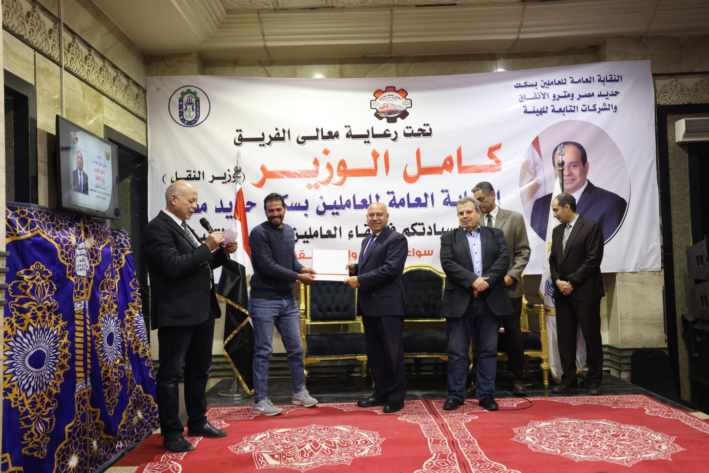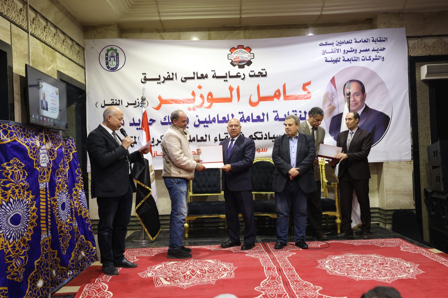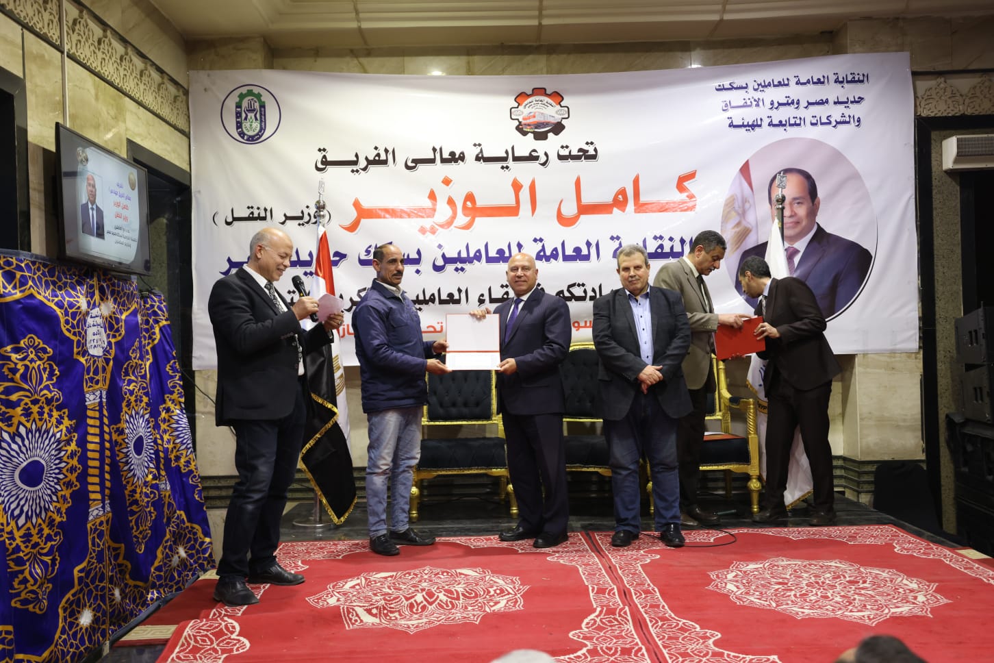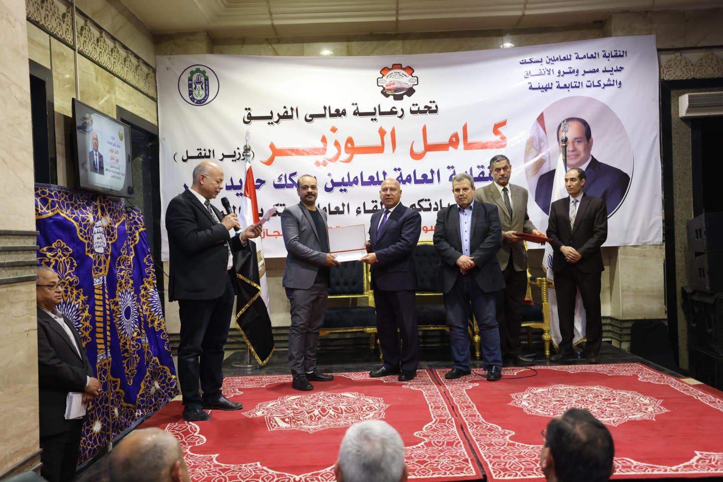 وفي ختام الاجتماع وفي إطار الاهتمام الكبير الذي توليه وزارة النقل بالعنصر البشري بالسكة الحديد باعتباره احد اهم عوامل نجاح المنظومة قام المهندس كامل الوزير بتكريم 22 من العاملين بالهيئة سواء من قائدي القطارات ، أو فنيي الحركة ،أو مشرفي القطارات أوخفراء المنافذ أو نظار المحطات والعاملين من طوائف التشغيل بمختلف القطاعات، وذلك تقديرًا لما اظهروه من احترافية وكفاءة عالية في منع وقوع حوادث ، و في رصد و احتواء المواقف الطارئة وسرعة التعامل معها والحد من تداعياتها المحتملة وفقا لإجراءات السلامة المعمول بها داخل الهيئة وبما يضمن الحفاظ على أرواح الركاب وتحقيق أعلى معدلات الامان و انتظام حركة التشغيل علي الشبكة.