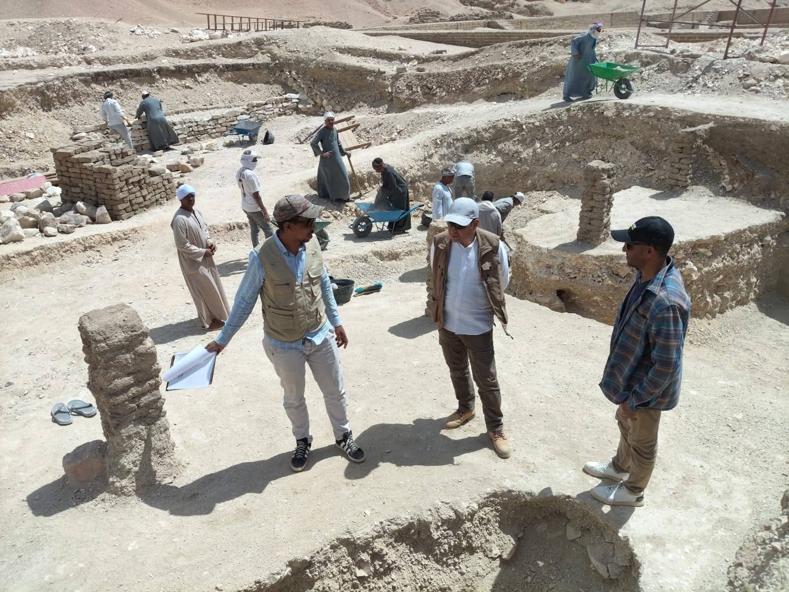 كما قام مدير عام آثار الأقصر بزيارة البعثة الإنجليزية العاملة بمنطقة الوديان الغربية حيث حرص على متابعة آخر ما أسفرت عنه أعمال الحفائر من اكتشافات جديدة إلى جانب مراجعة خطط العمل خلال الفترة المقبلة بما يساهم في تحقيق المزيد من النتائج التي تدعم مكانة الأقصر على خريطة السياحة العالمية.