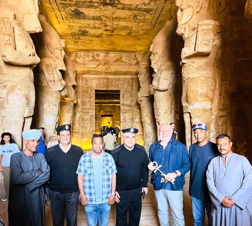 حيث كان فى إستقبالهم على ياسين رئيس مدينة أبو سمبل السياحية ، وأحمد مسعود مدير عام أثار أبو سمبل حيث تفقد الوفد معبد رمسيس الثانى ، ومعبد زوجته نفرتارى وسط إنبهارهم بعظمة الحضارة المصرية .