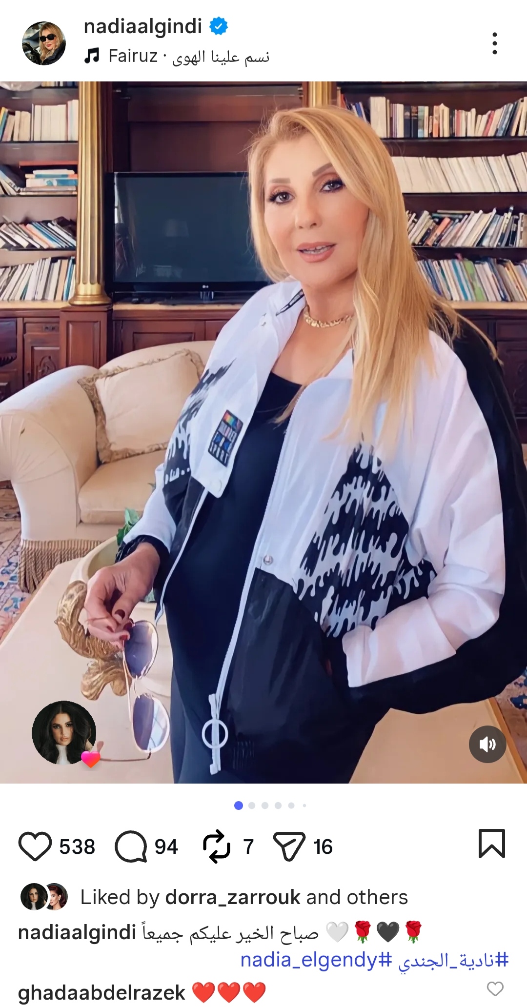 نشرت الفنانة نادية الجندي ، صور جديدة لها عبر حسابها الشخصي على موقع تبادل الصور والفيديوهات إنستجرام .