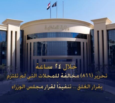 أسفرت جهود أجهزة وزارة الداخلية على مستوى الجمهورية، خلال 24 ساعة عن تحرير (866) مخالفة للمحلات والمنشآت التى لم تلتزم بقرار الغلق، وتم إتخاذ الإجراءات القانونية حيال المخالفين، وعرضهم على النيابة العامة.