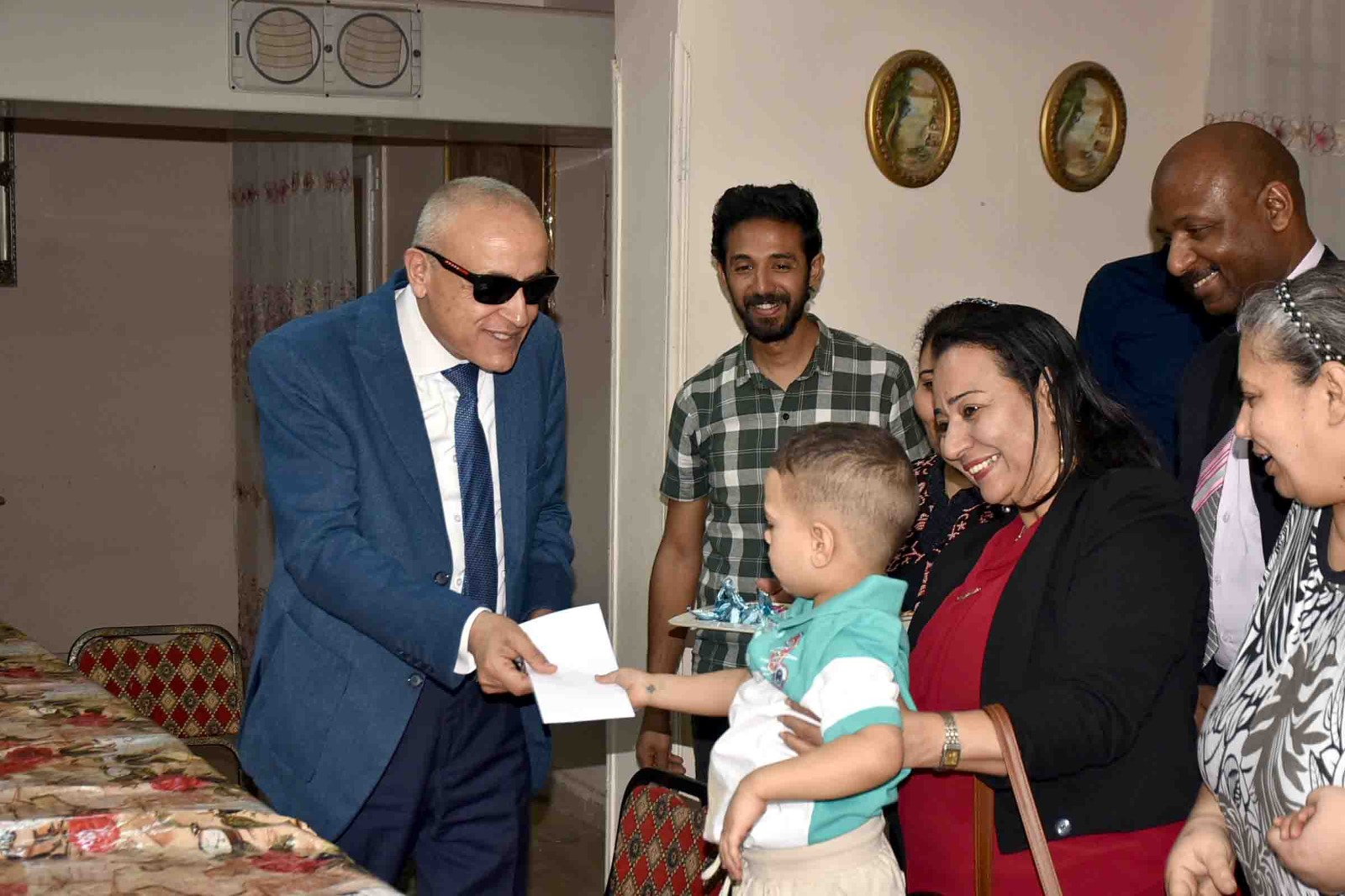 وخلال الزيارة، حرص المحافظ على تقديم الهدايا العينية والمعايدات للأطفال، متمنياً لهم عيداً سعيداً ومستقبلاً مشرقاً.