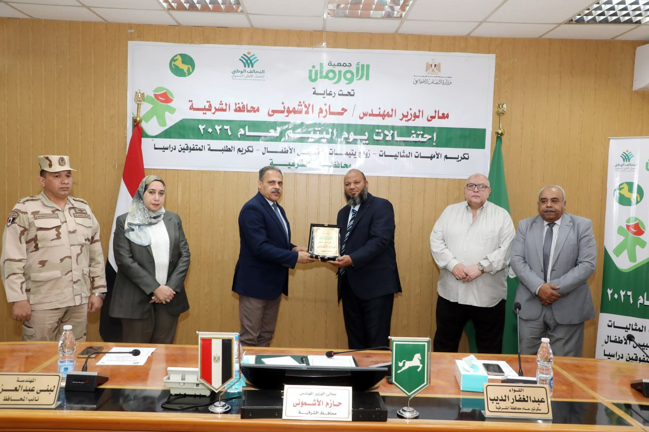 وعلى هامش الإحتفالية أهدى مدير المشروعات بجمعية الأورمان فرع الشرقية درعاً تذكارياً لمحافظ الشرقية تقديراً لمجهوداته الملموسه في تعزيز قيم التكافل والتراحم بين أبناء المحافظة.
