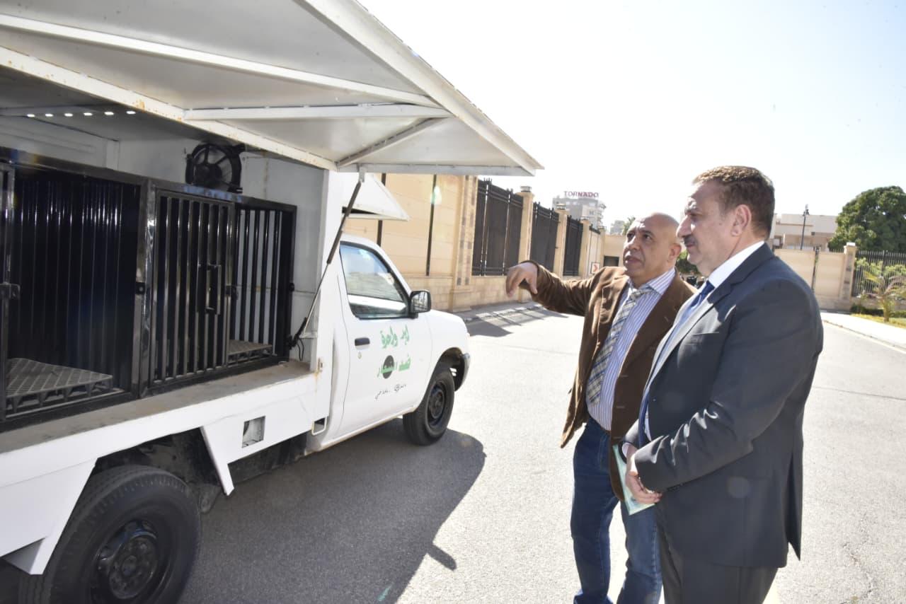 محافظ بورسعيد يتفقد نموذجًا للسيارات المخصصة لجمع الكلاب الحرة من الشوارع