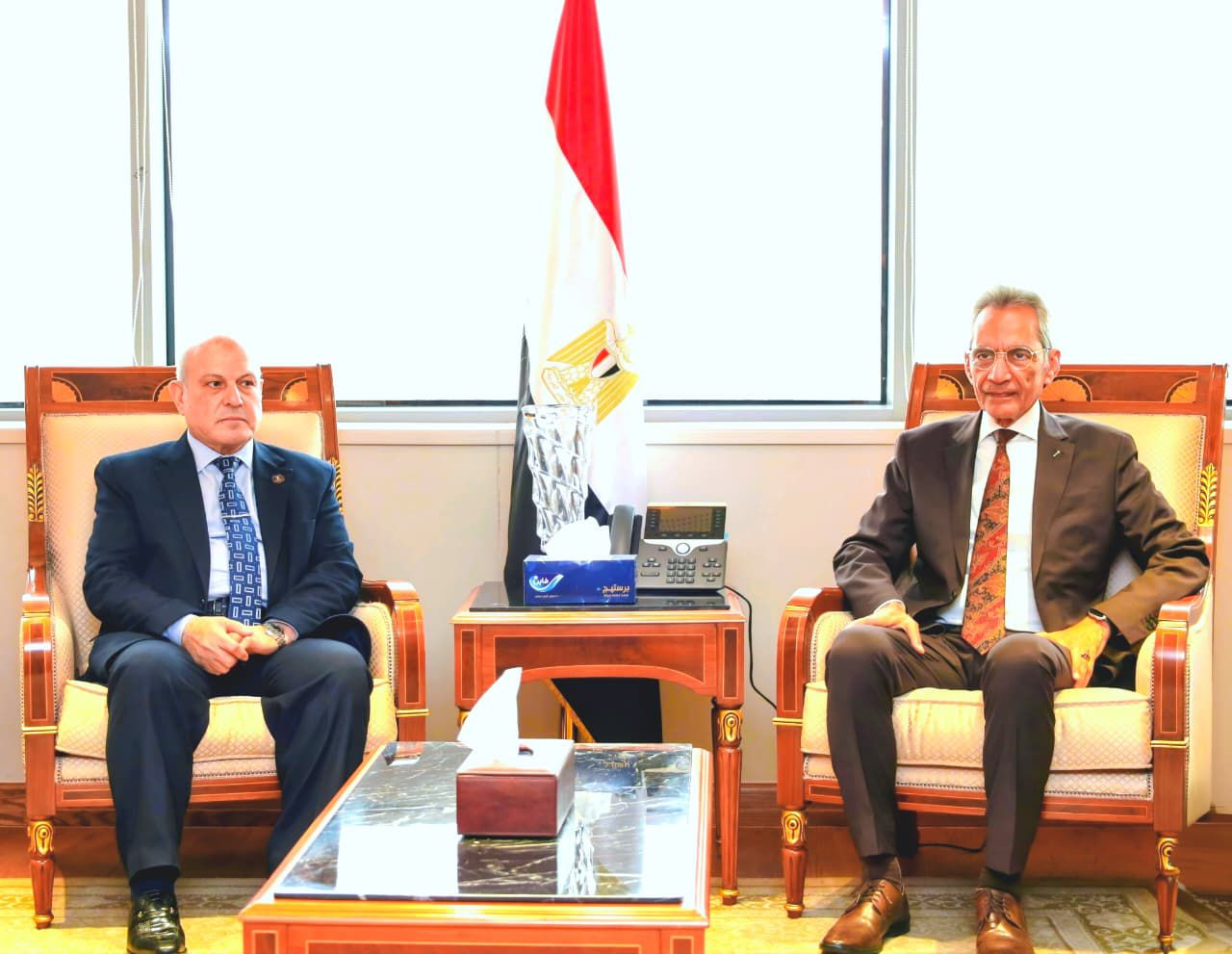 قام المستشار محمد الشناوي رئيس هيئة النيابة الإدارية، بزيارة المستشار هاني حنا وزير شئون المجالس النيابية؛ وذلك لتقديم التهنئة له بمناسبة توليه مهام منصبه الرفيع.
