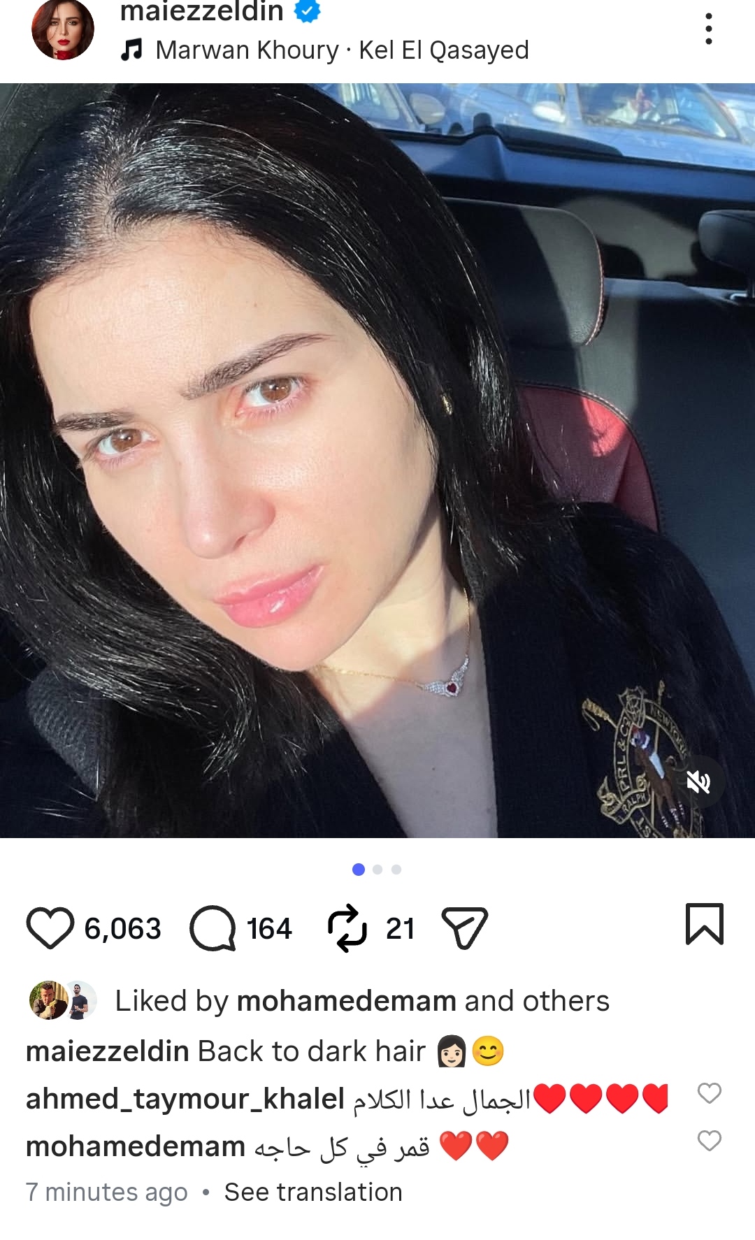 نشرت الفنانة مي عز الدين ، صور جديدة لها عبر حسابها الشخصي على موقع تبادل الصور والفيديوهات إنستجرام .