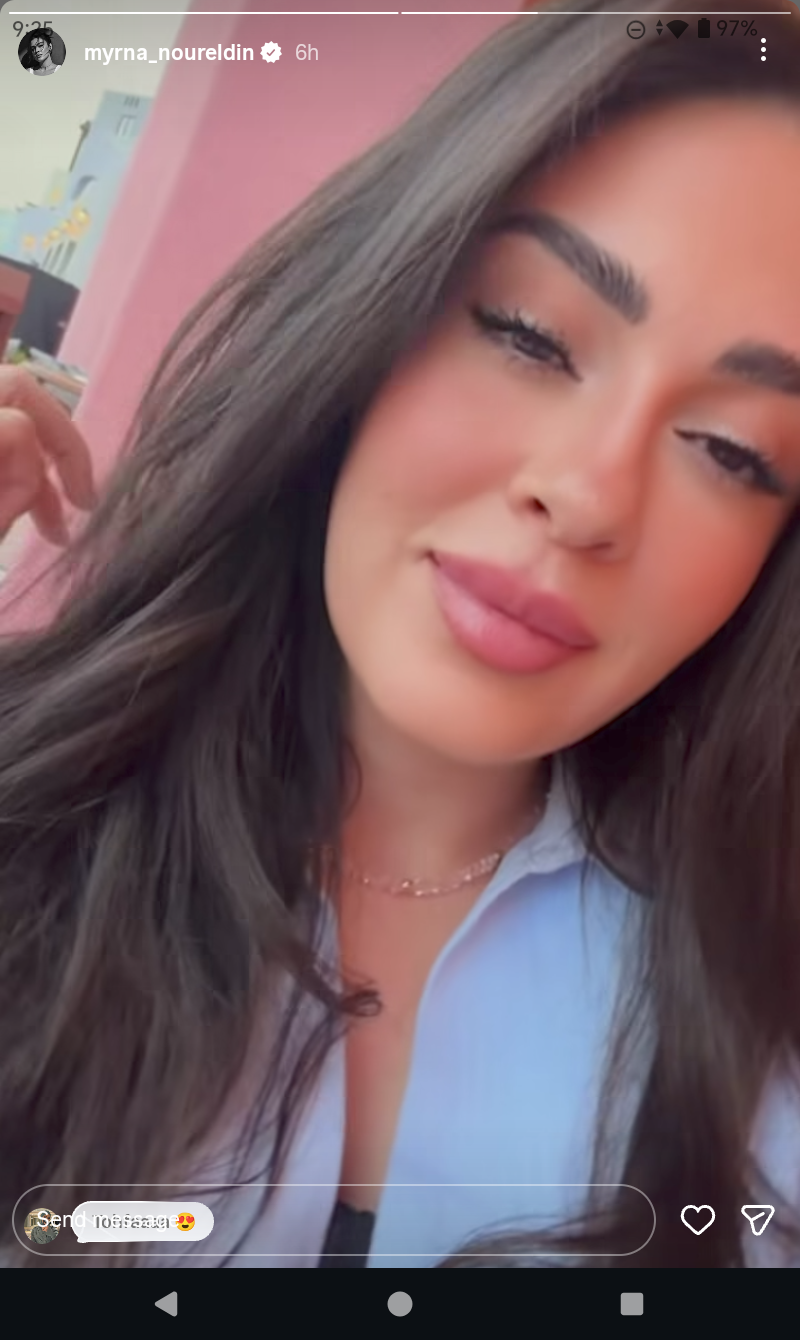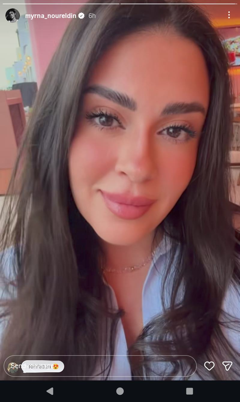 شاركت الفنانة ميرنا نور الدين متابعيها فيديو جديد لها عبر صفحتها على موقع التواصل الاجتماعي إنستجرام خلال خاصية الاستوري.