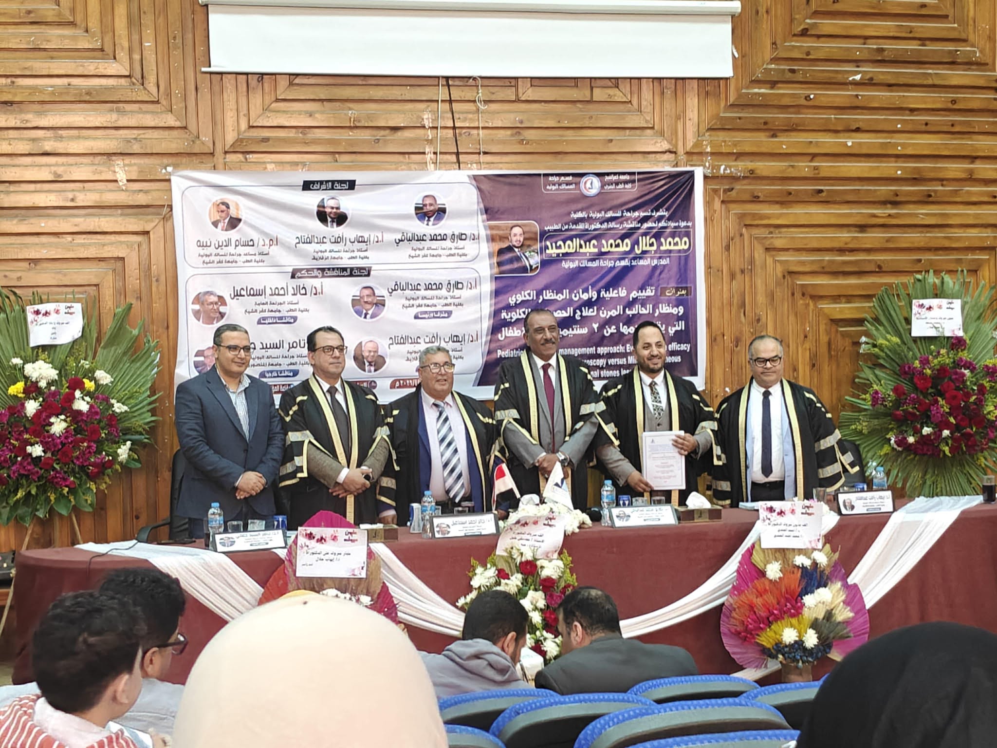 وجاءت رسالة الطبيب الباحث تحت عنوان «تقييم فاعلية وأمان المنظار الكلوي ومنظار الحالب المرن لعلاج الحصوات الكلوية التي يقل حجمها عن 2 سنتيمتر في الأطفال».